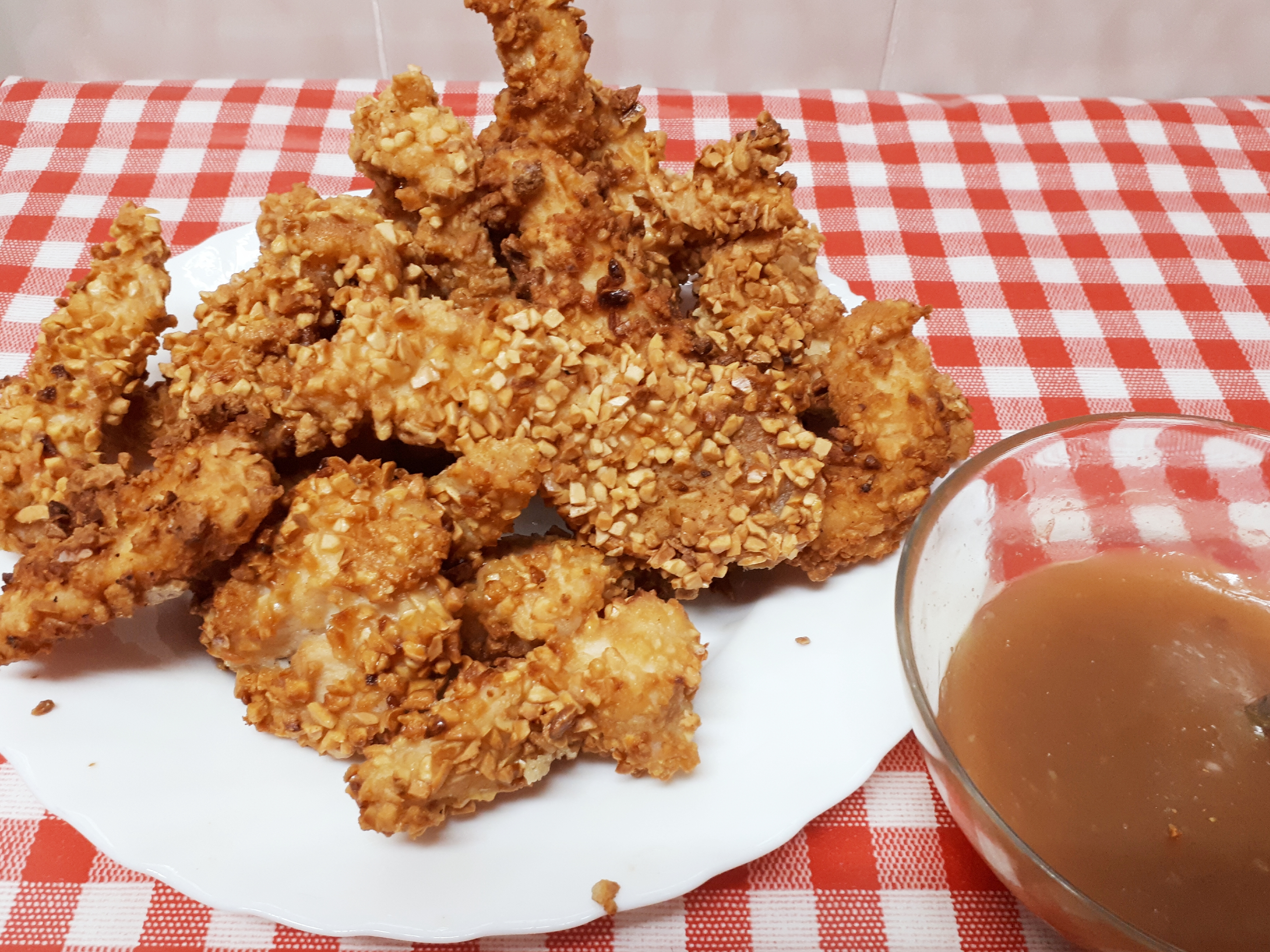 TIRAS DE POLLO ALMENDRADO CON SALSA LIMÓN