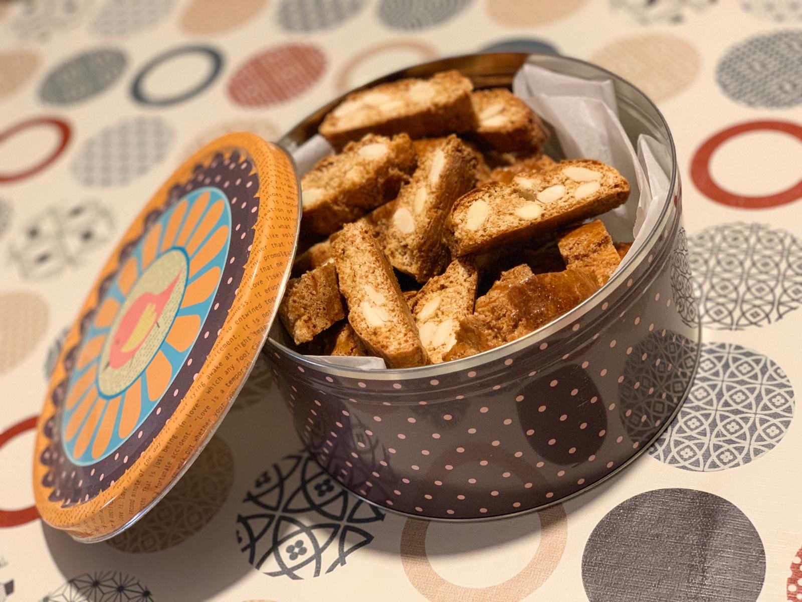Hornee durante 20 minutos (170º). Retire del horno e inmediatamente, con un cuchillo bien afilado, corte rebanadas de 1 cm de grosor. Coloque las rebanadas de nuevo en la bandeja e introduzca en el horno ya apagado para secarlos con el calor residual (aprox. 2-3 horas). Deje enfriar y sirva o conserve en un recipiente para galletas.