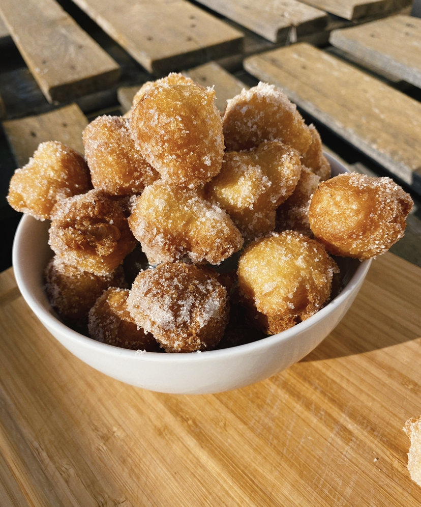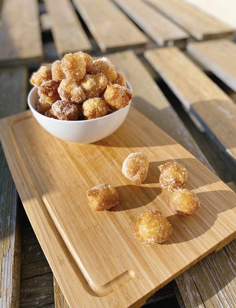 Finalmente, espolvoreamos el azúcar por encima de los buñuelos y ya los podéis servir.