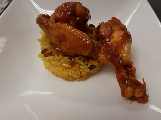 Alitas con corona de arroz y piña al papillote