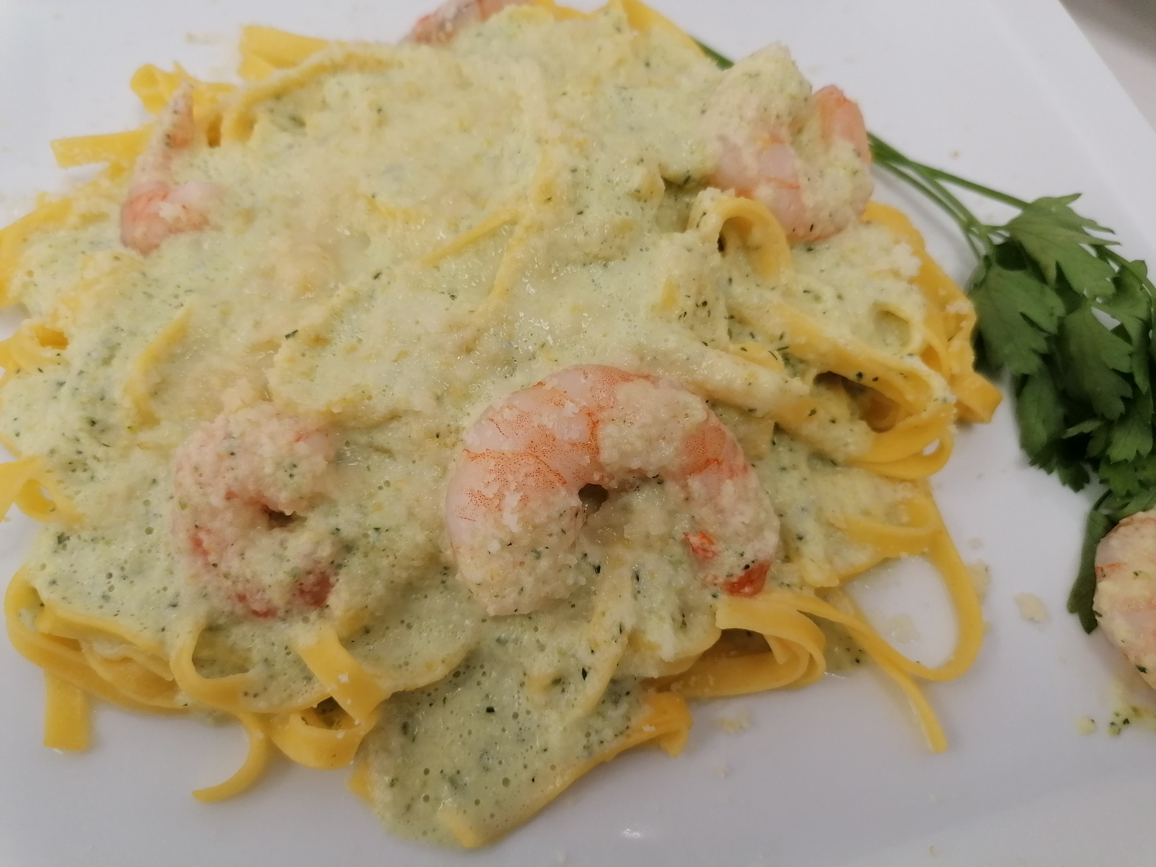 Tagliatelle con calabacin y langostinos muy refrescante su sabor.