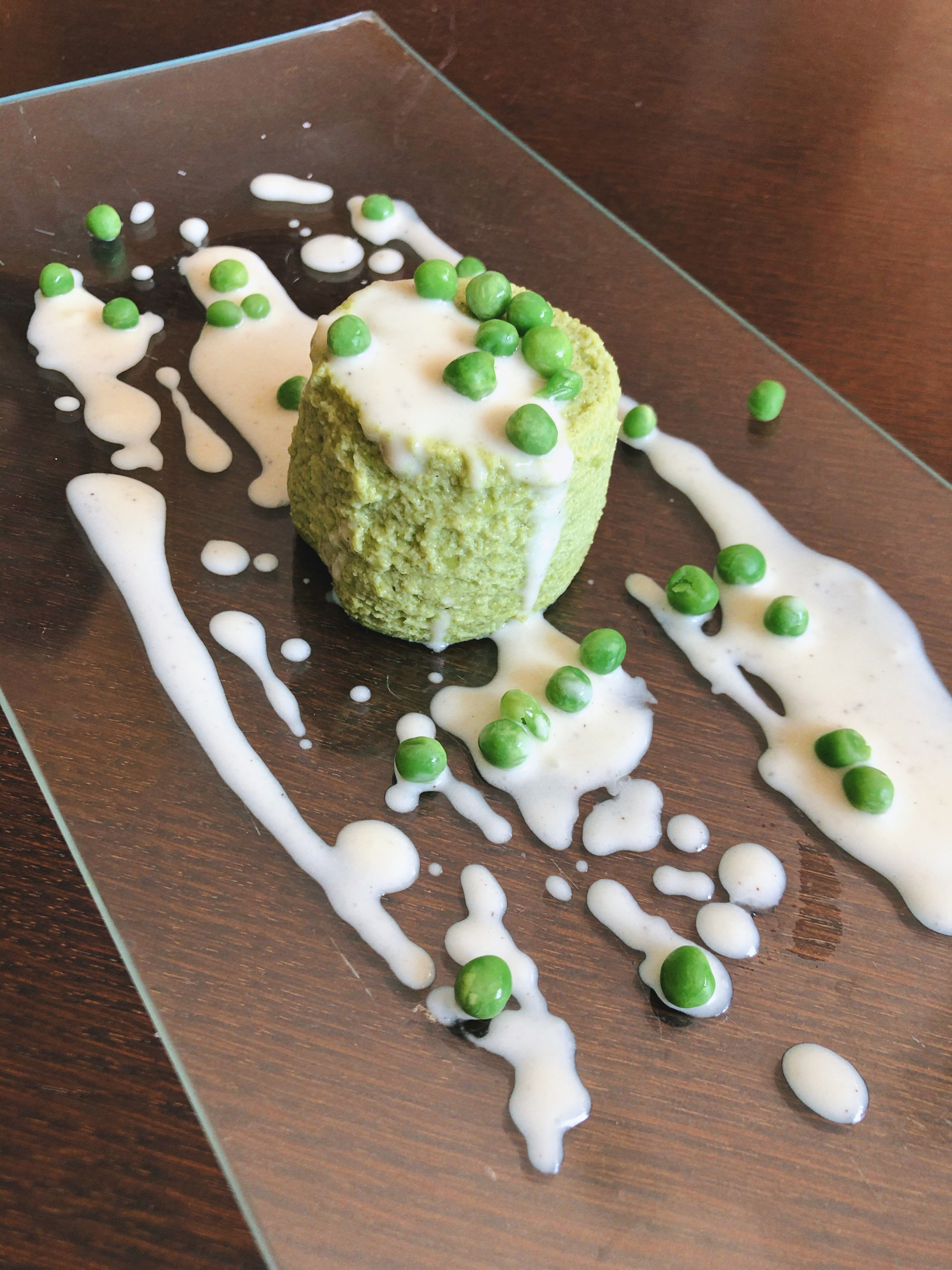 FLAN DE GUISANTES CON SALSA DE QUESO