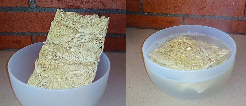Mientras tanto pondremos agua a hervir y colocaremos los fideos yakisova en un bol.
