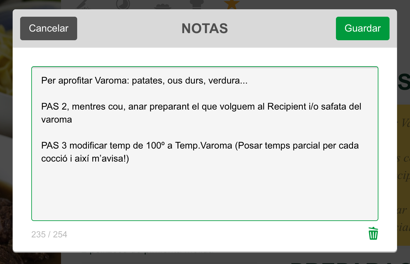 Para l@s que teneis el TM5® con COOK-KEY® os adjunto la nota que tengo yo puesta en la receta y así la tengo disponible, para consultar en la pantalla de mi Thermomix®, mientras estoy en cocina guiada.