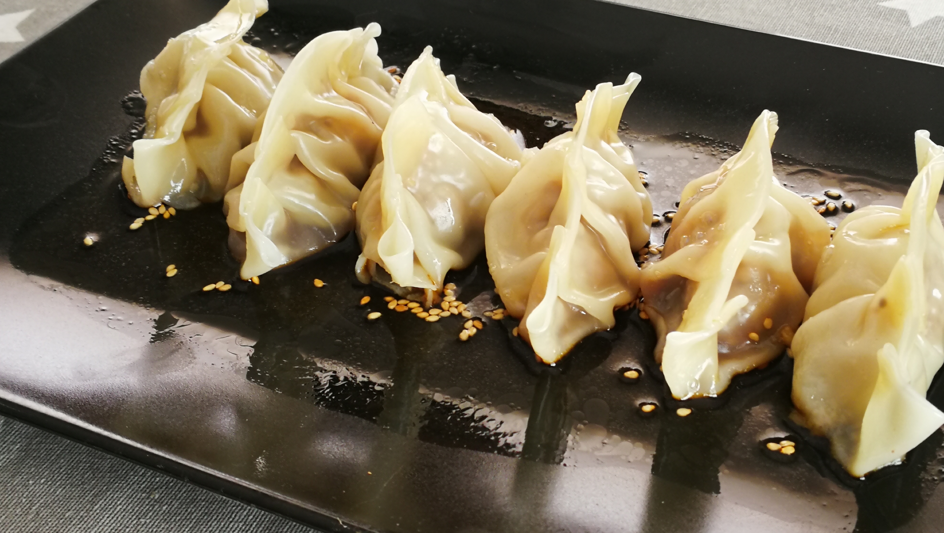 La masa de las gyozas son fáciles de preparar, Quieres un truco? Estira la masa lo mas fina posible y cortala con un aro de emplatar del diametro que desees. Conseguirás asi unas obleas perfectas.
