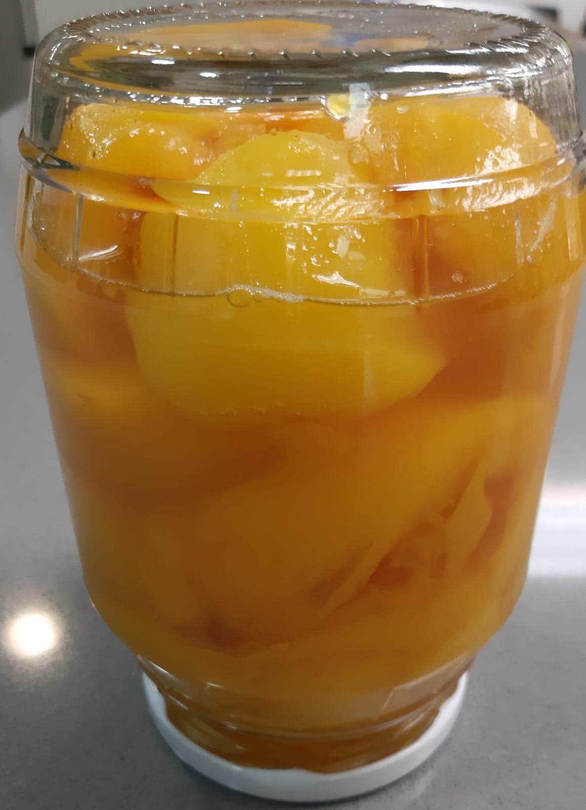 Pasado este tiempo coloca los melocotones con cuidado en un bote hermético previamente esterilizado.