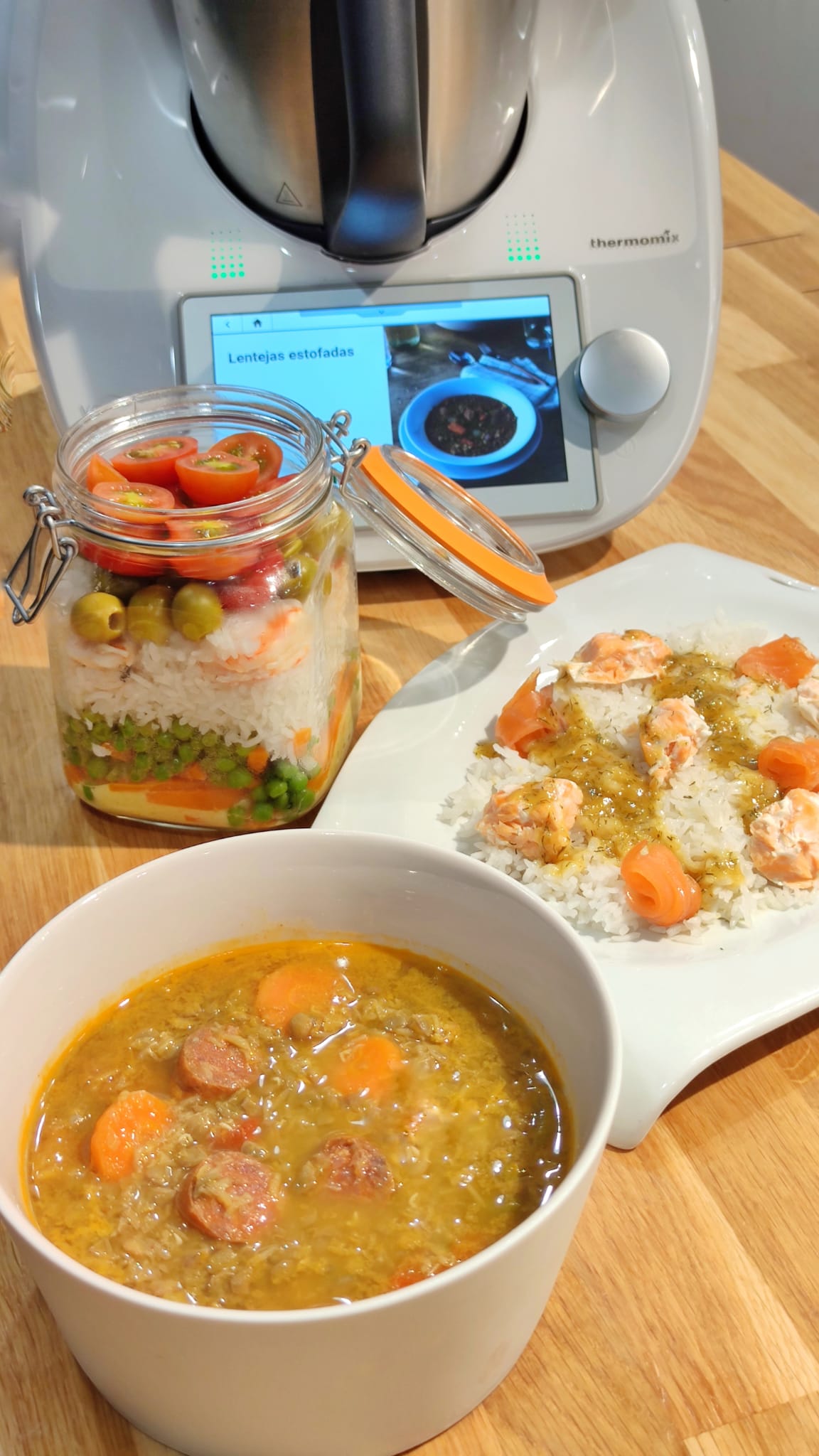 ¿Sabes que con tu Thermomix, a la vez que haces unas deliciosas lentejas, puedes aprovechar el vapor que generan y cocinar en el Varoma, cualquier cosa que te apetezca para la cena o el dia siguiente?