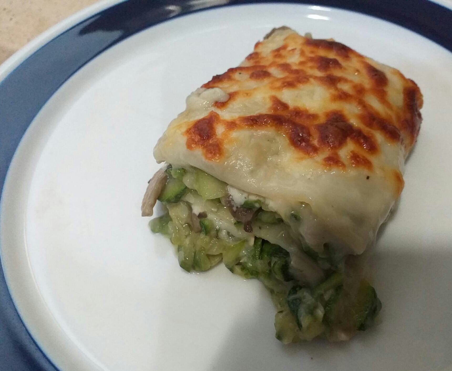 Lasaña de calabacín y champiñones con queso de cabra