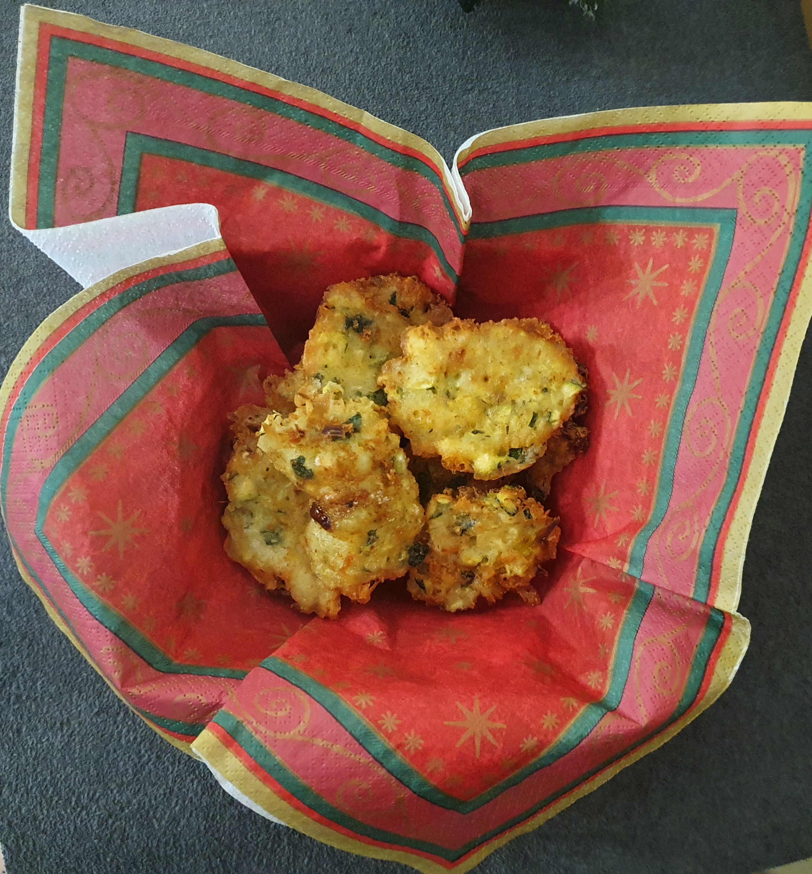 Buñuelos de calabacín, queso feta y menta