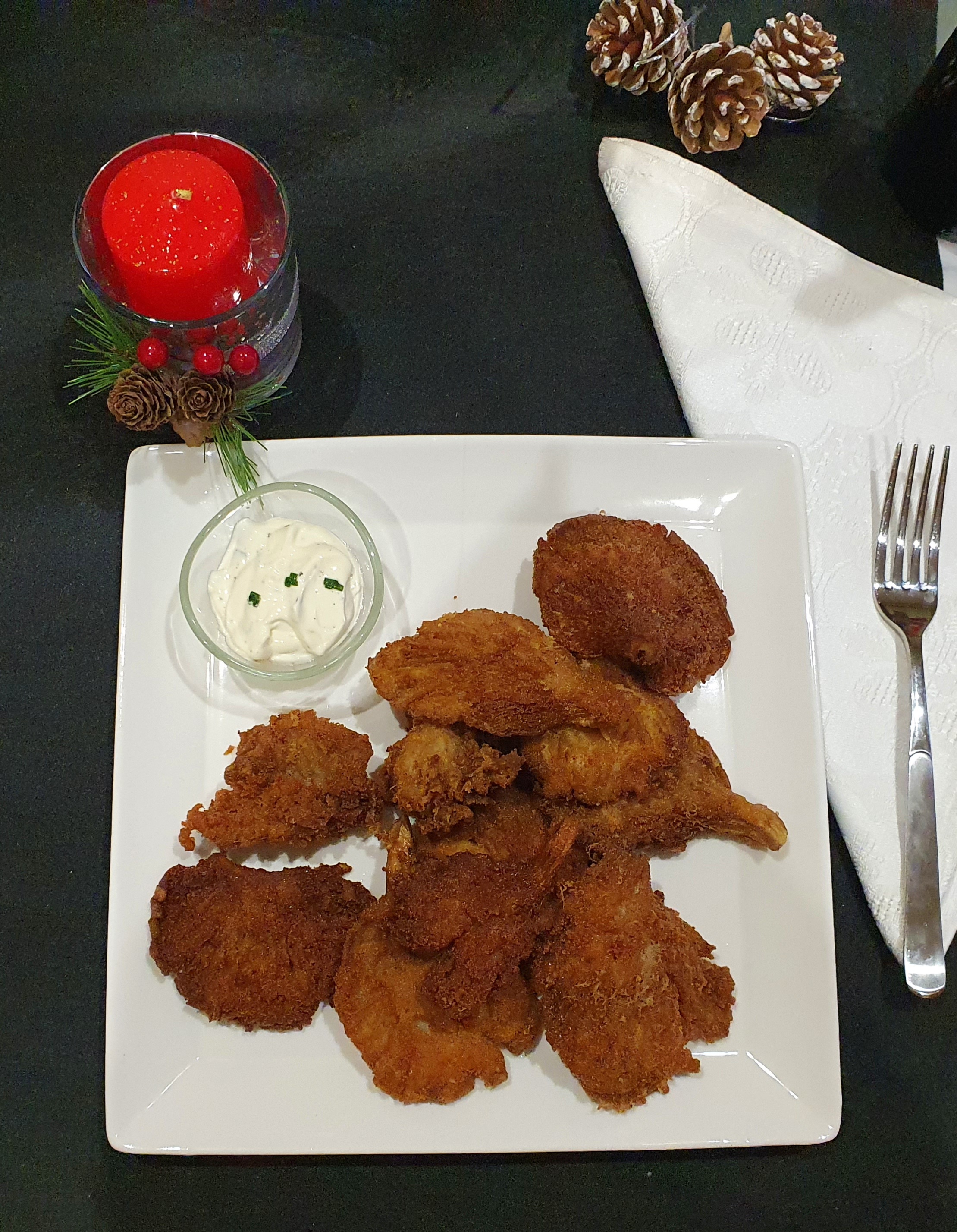 Setas empanadas con mayonesa de hierbas