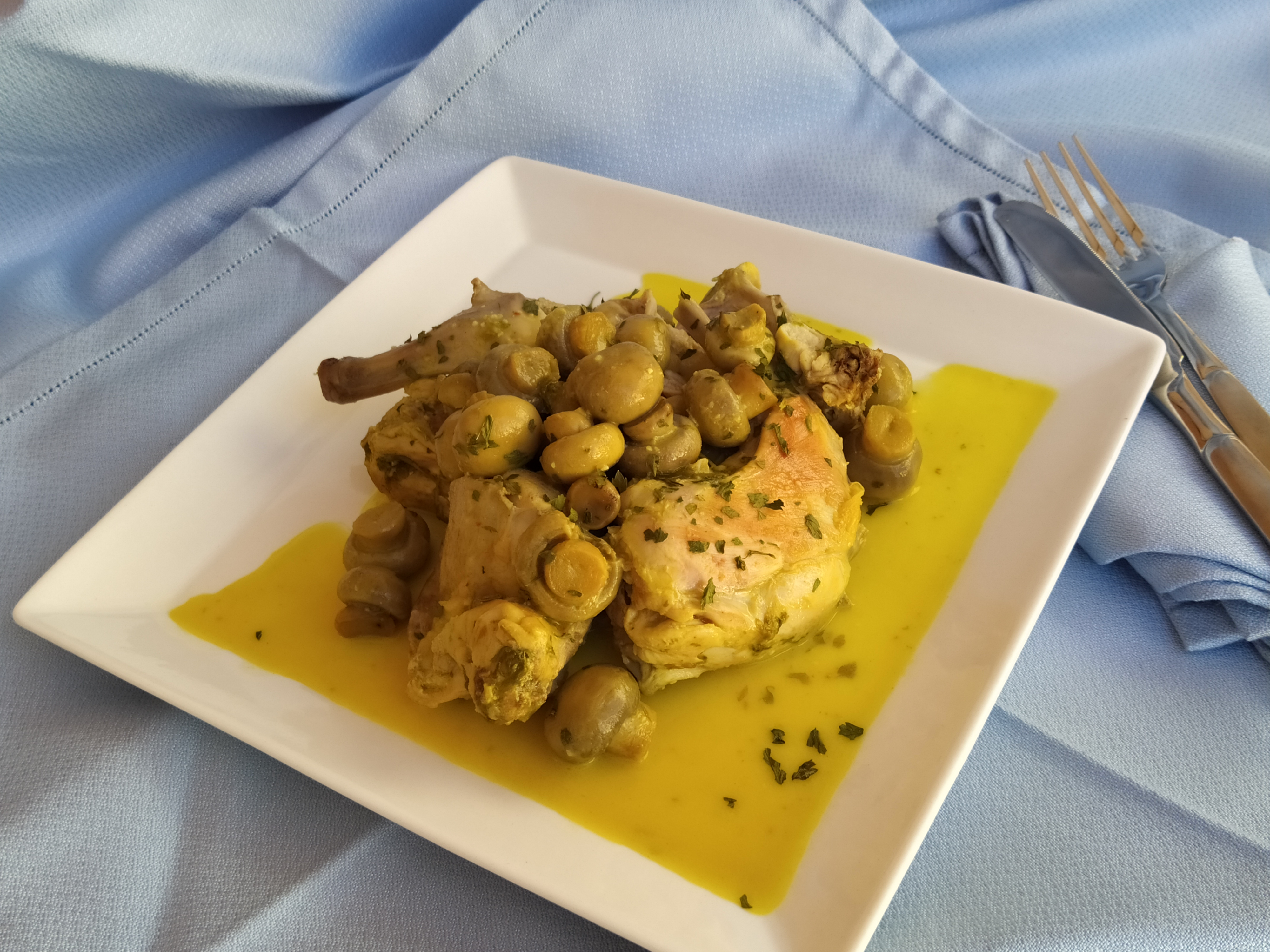 Conejo al ajillo con setas