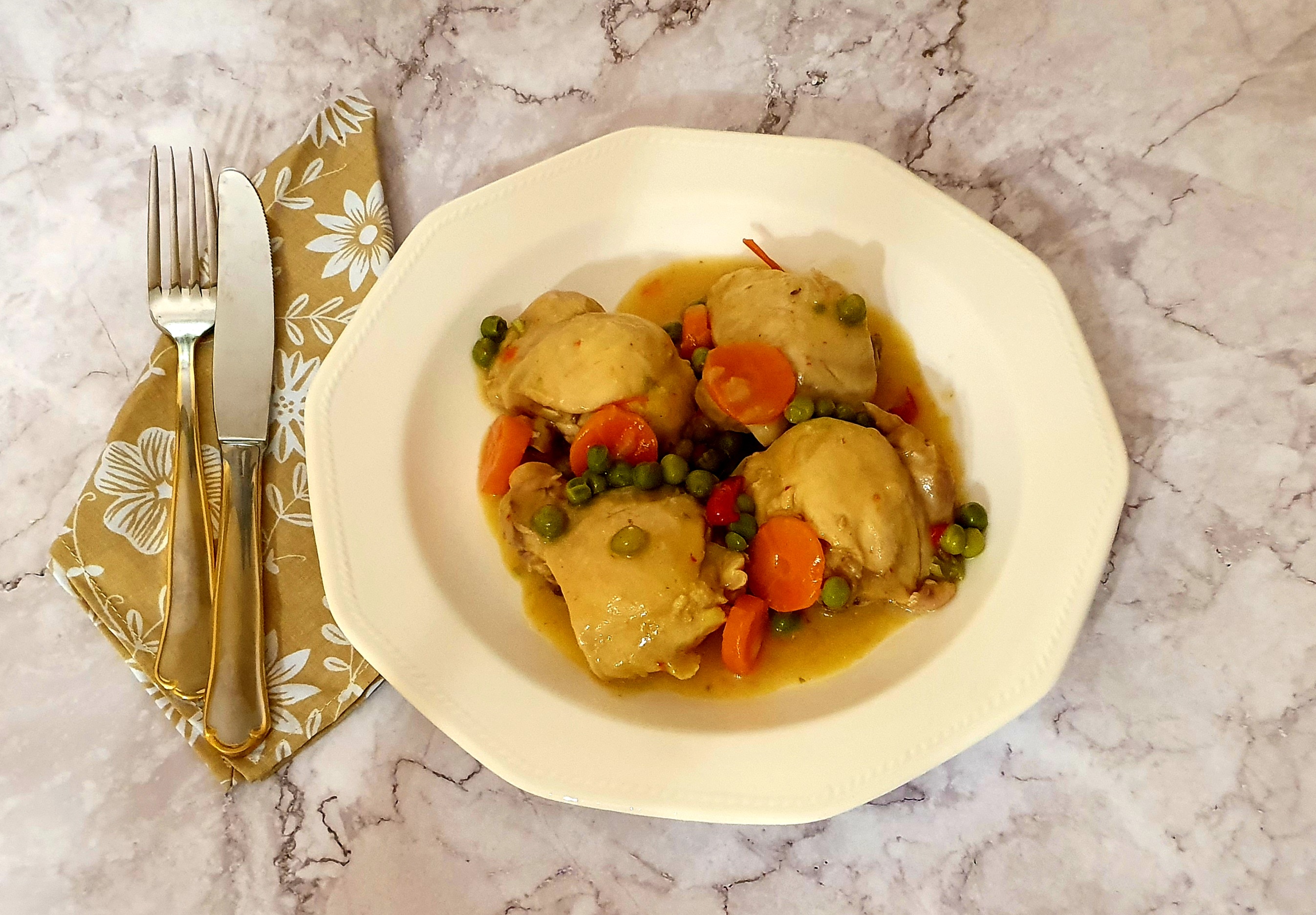 Estofado de contramuslos de pollo de corral
