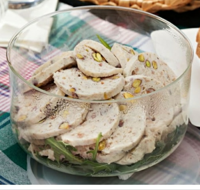 Deje enfriar el fiambre de pollo y córtelo en lonchas finas. Sirva el fiambre de pollo frío con la rúcula en sándwiches y bocadillos.