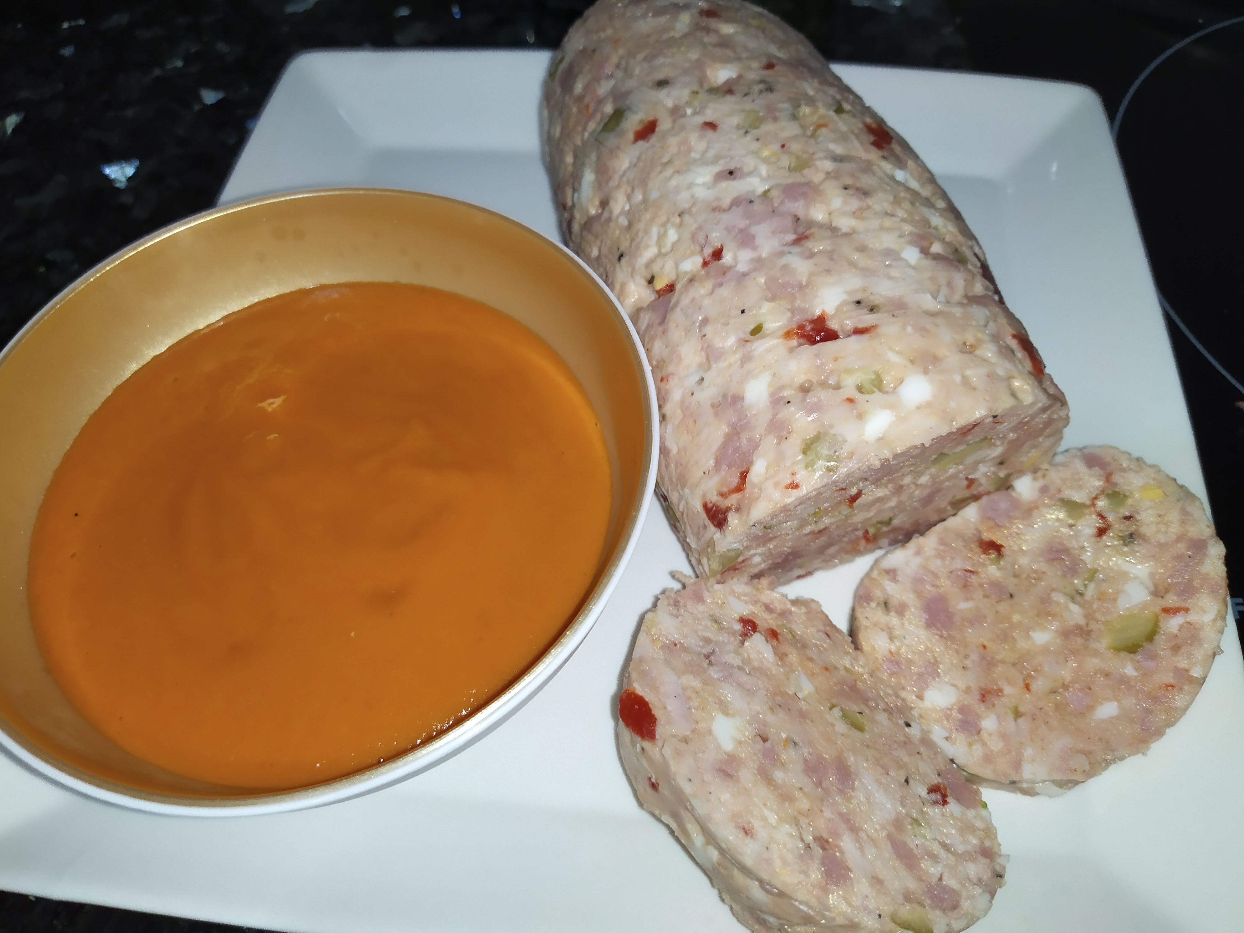 FIAMBRE DE POLLO CON SALSA DE PIMIENTOS DEL PIQUILLO