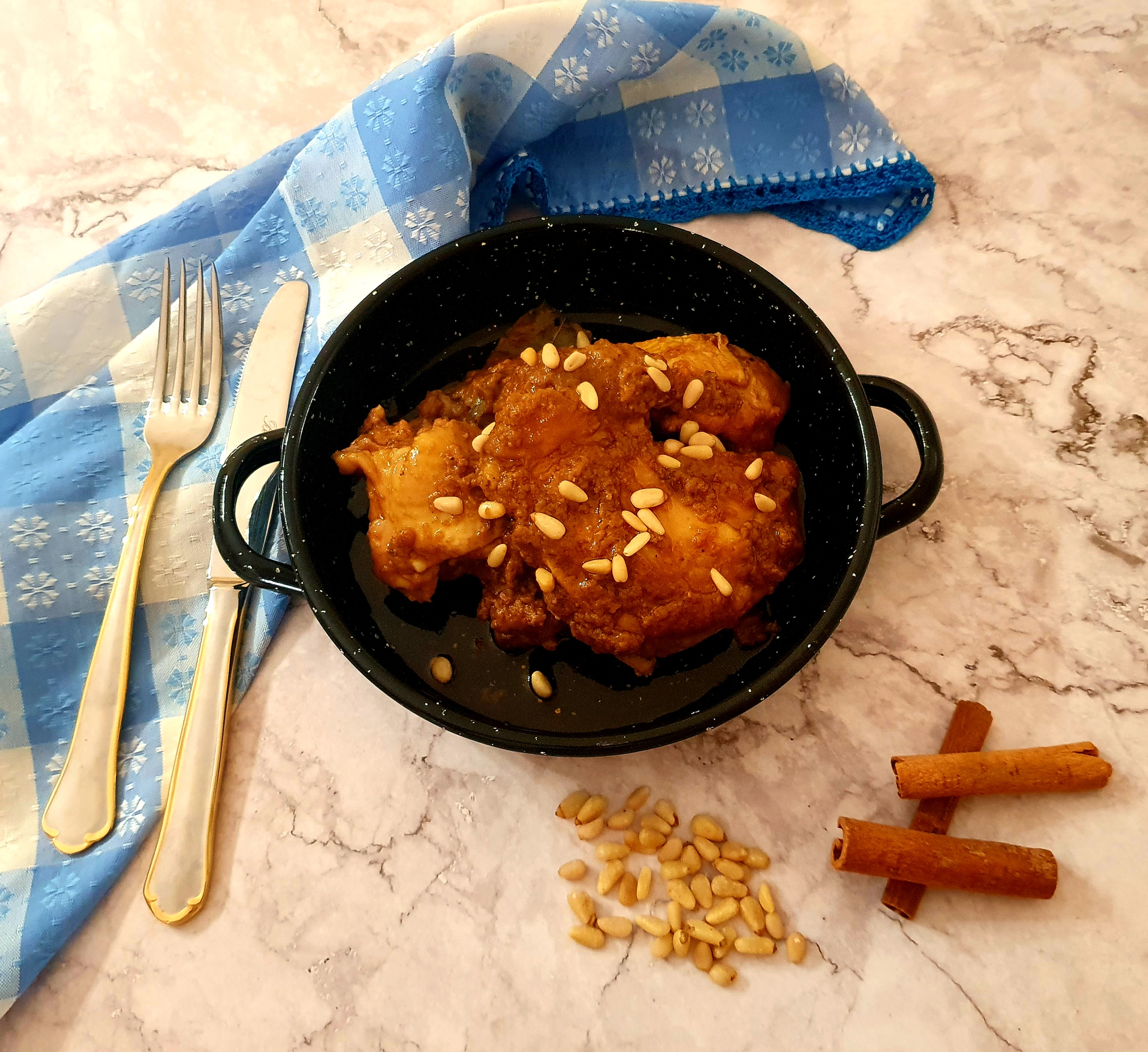 Añada los contramuslos de pollo, el tomate, la cebolla y los ajos y rehogue 8 min/120°C/vel cuchara.
