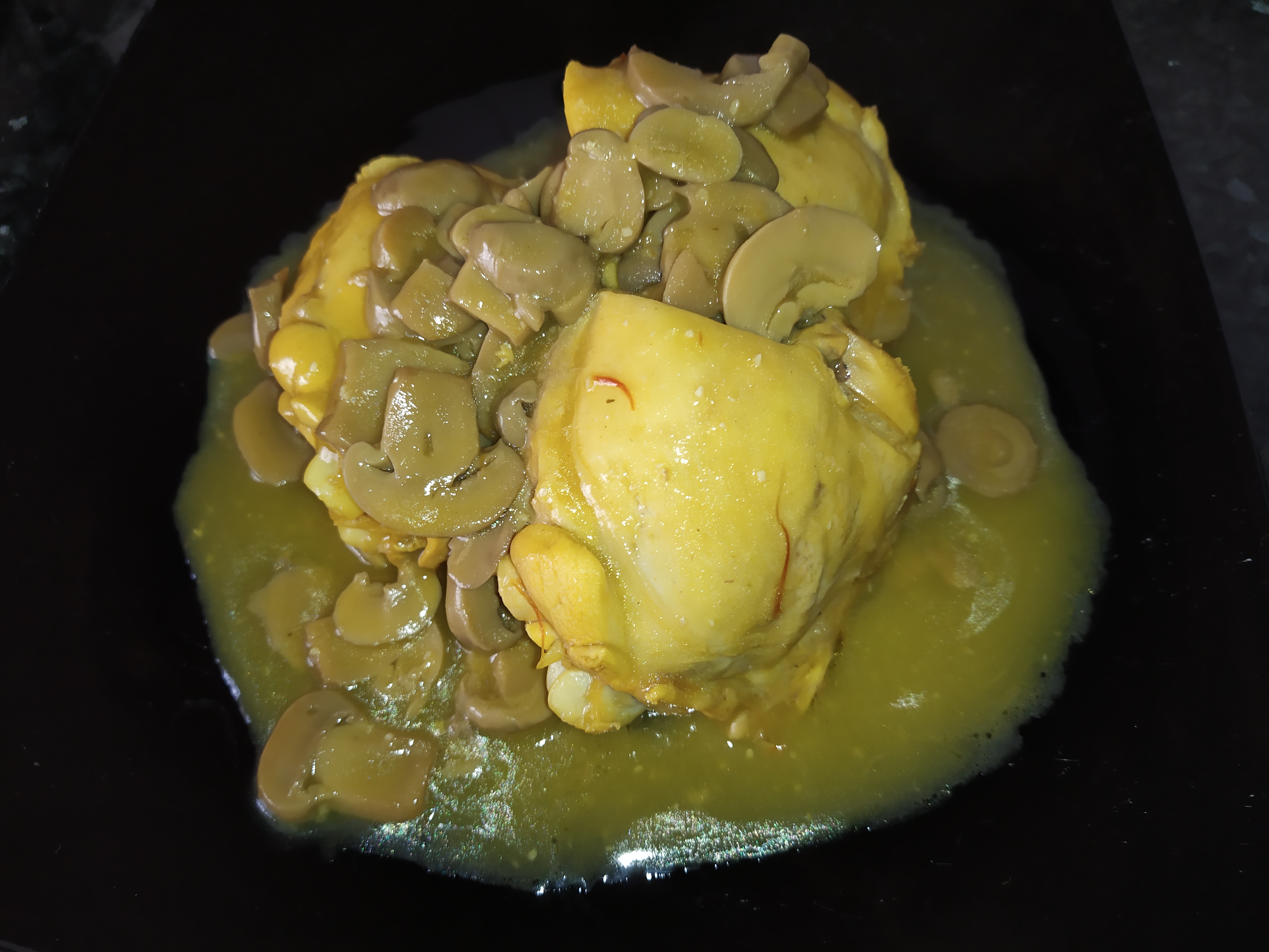 Incorpore el pollo, el vino blanco, los champiñones y la pastilla de caldo y programe 30 min/100°C//vel . Retire del vaso y sirva.