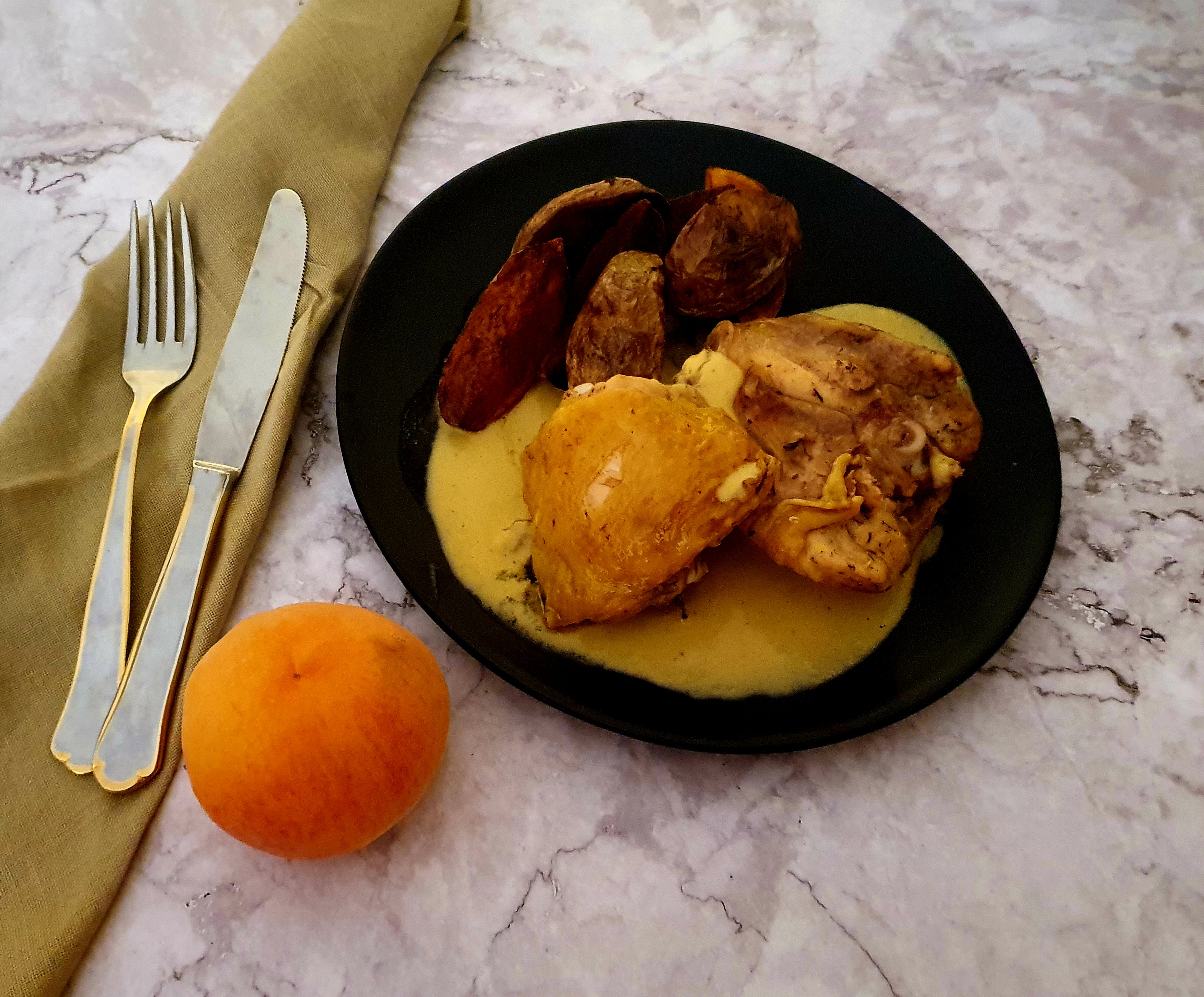 Pollo con salsa de melocotón