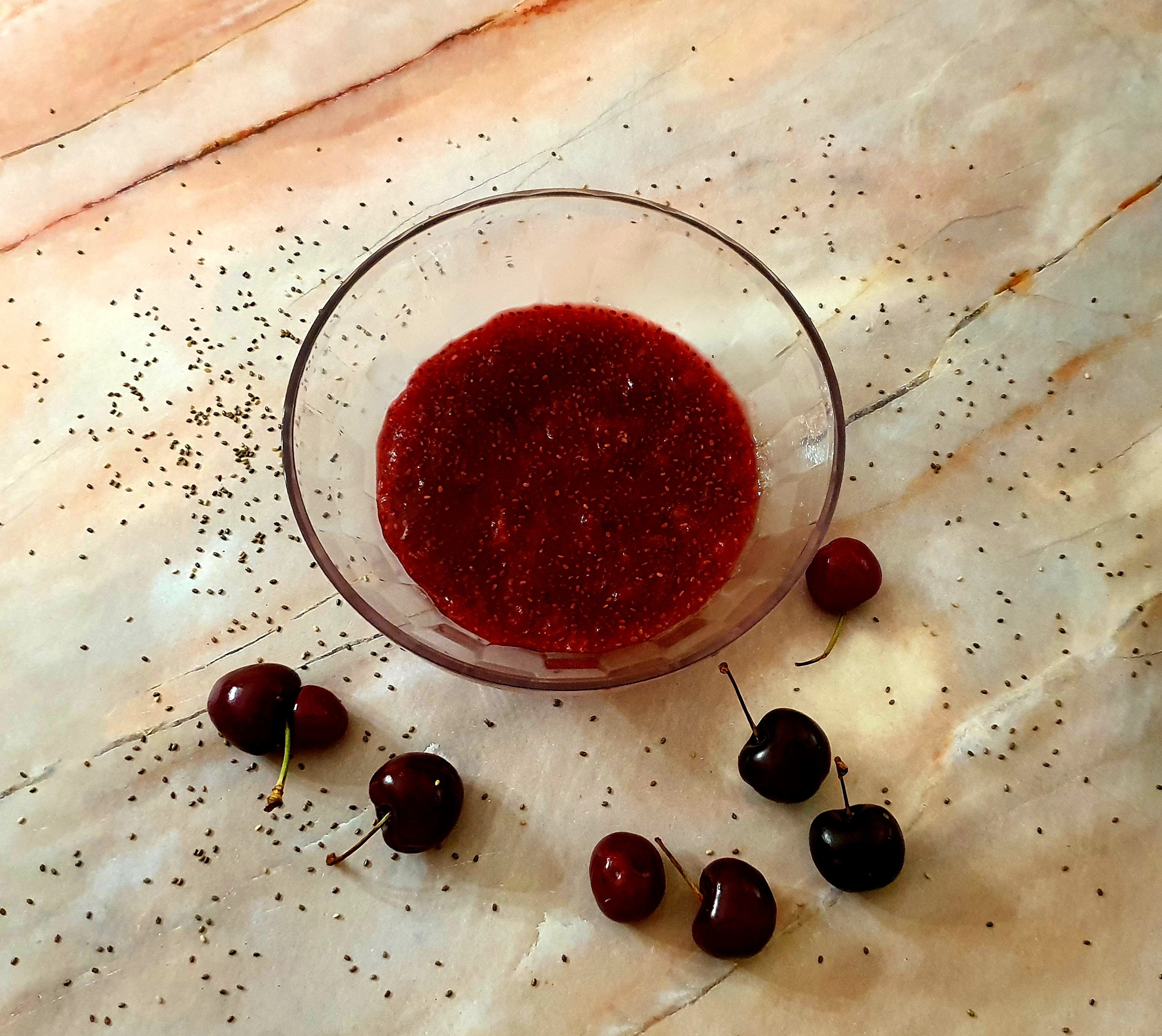 Mermelada de cerezas y chía sin azúcar