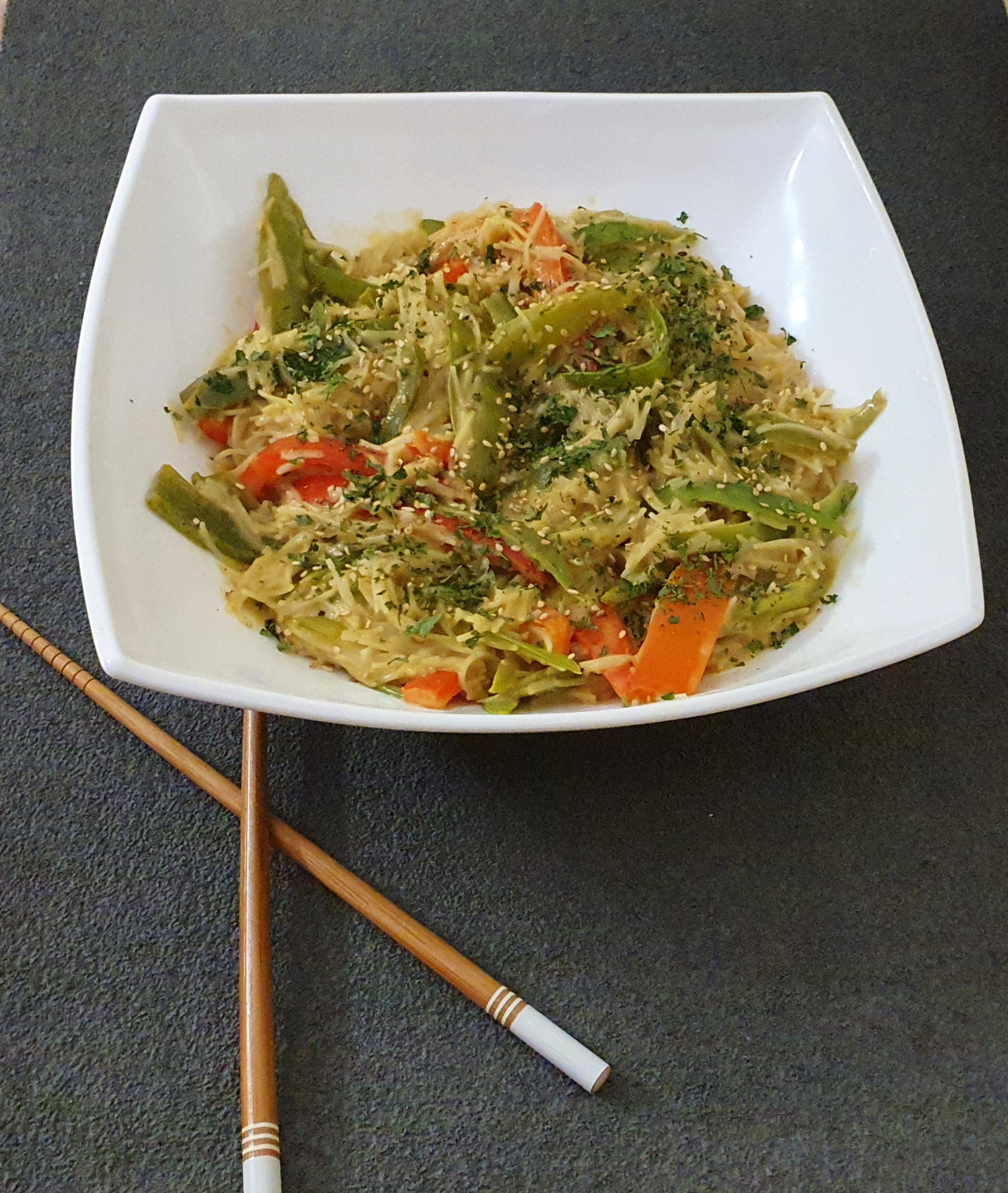 Fideos chinos con verduras al curry