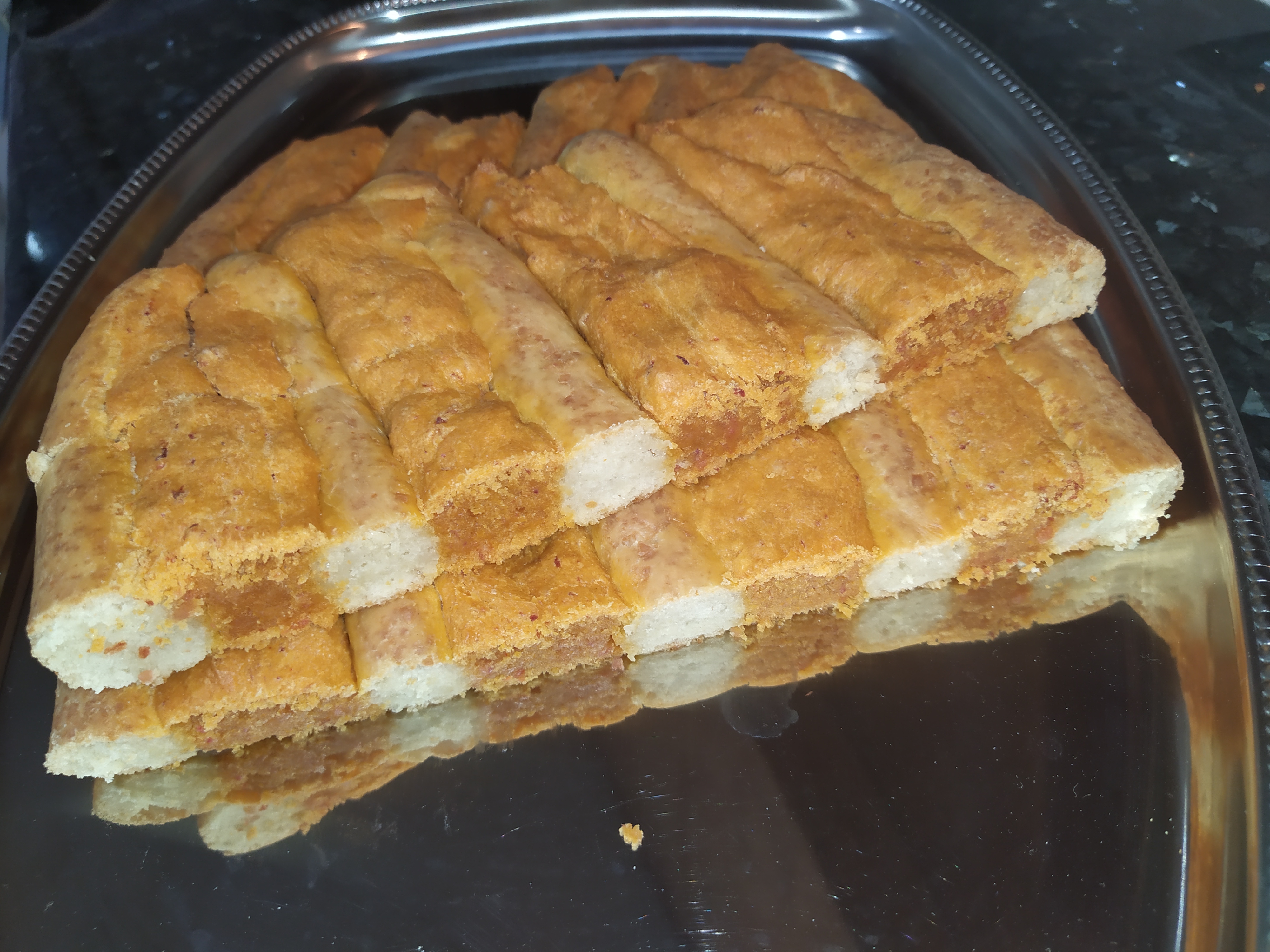 • Una vez formadas las tiras colóquelas en una bandeja de horno y ponga una tira de queso y una de sobrasada intercaladas formando la bandera catalana.