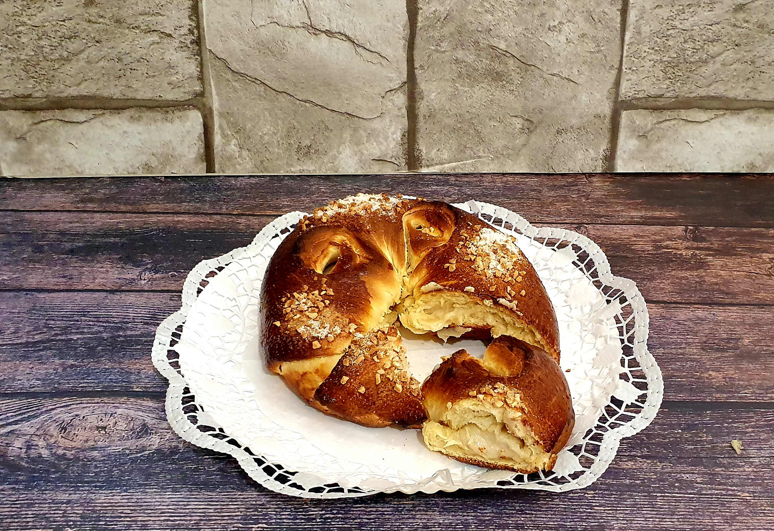 Un roscón típico de Reyes es el relleno de mazapán.