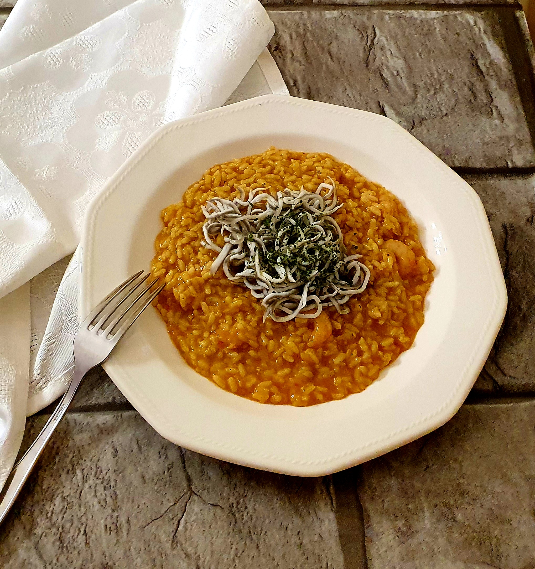 Arroz con gulas y gambones