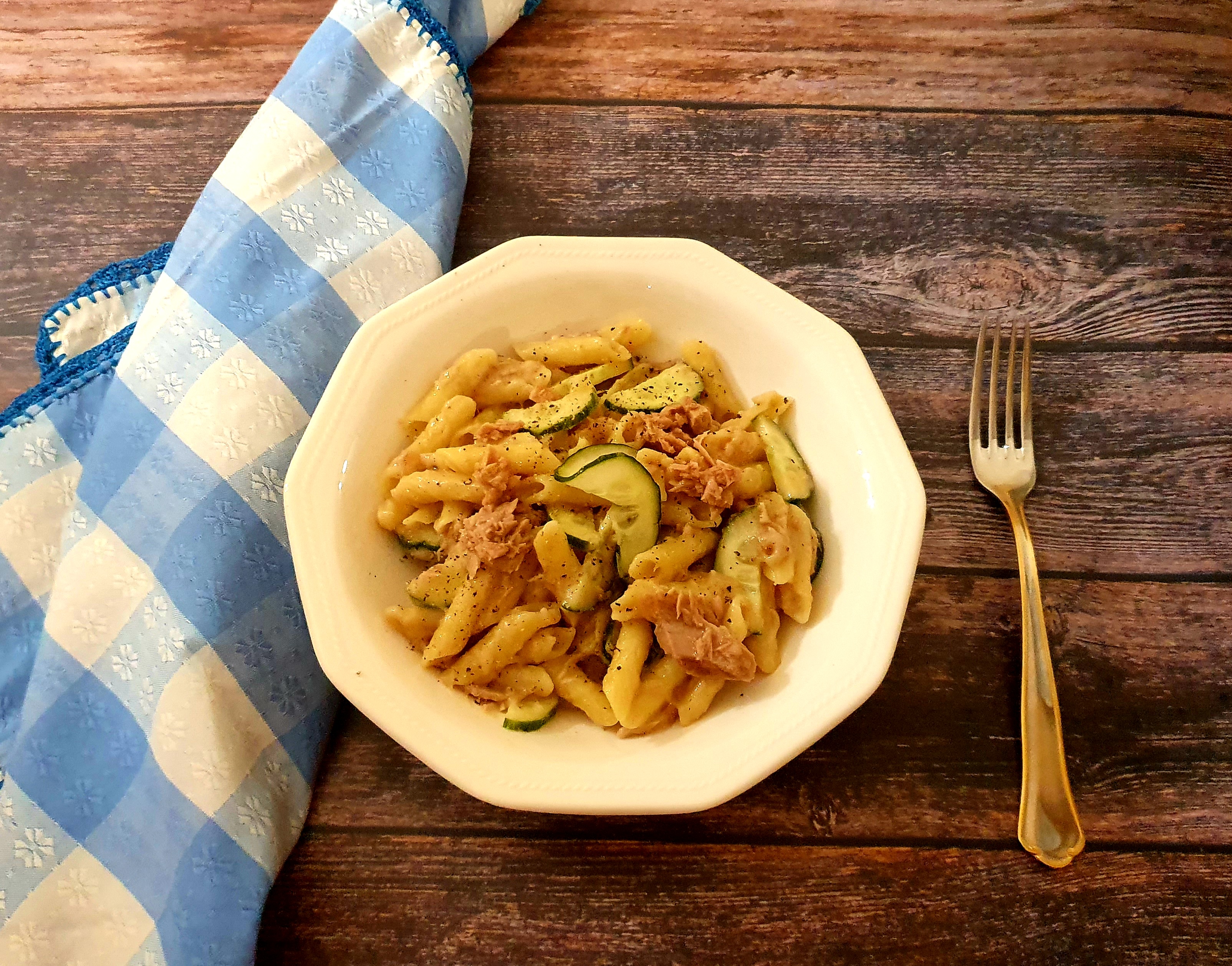 Ensalada de pasta con atún y pepino
