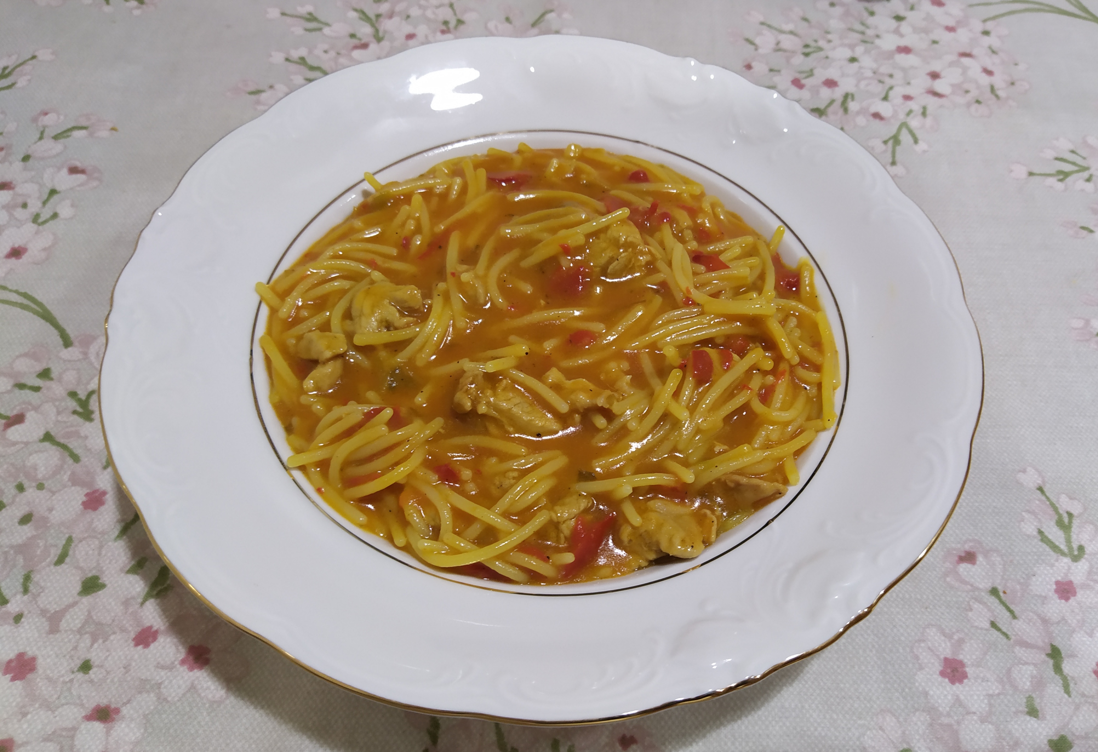 Añada los fideos y programe 8 min/100°C//vel 1. Vierta la fideuá en una fuente, deje reposar unos minutos y sirva.