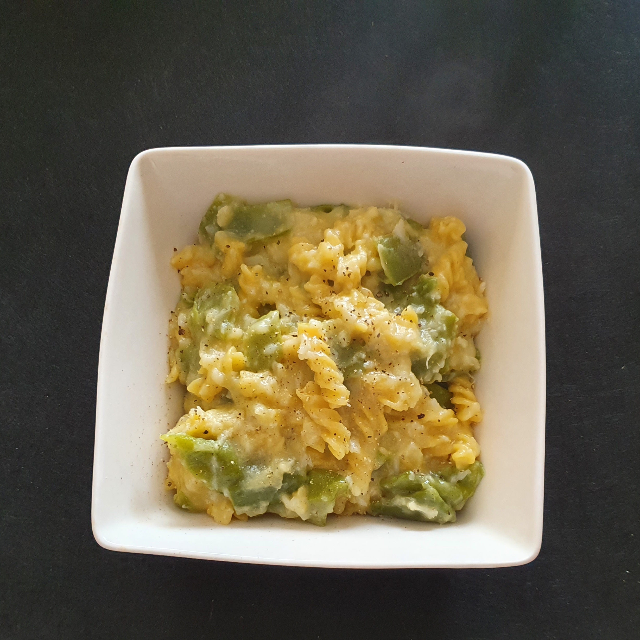 Incorpore la pasta y programe el tiempo indicado en el paquete/100°C/giro inverso/vel cuchara. Vierta en una fuente y sirva espolvoreado con pimienta negra.