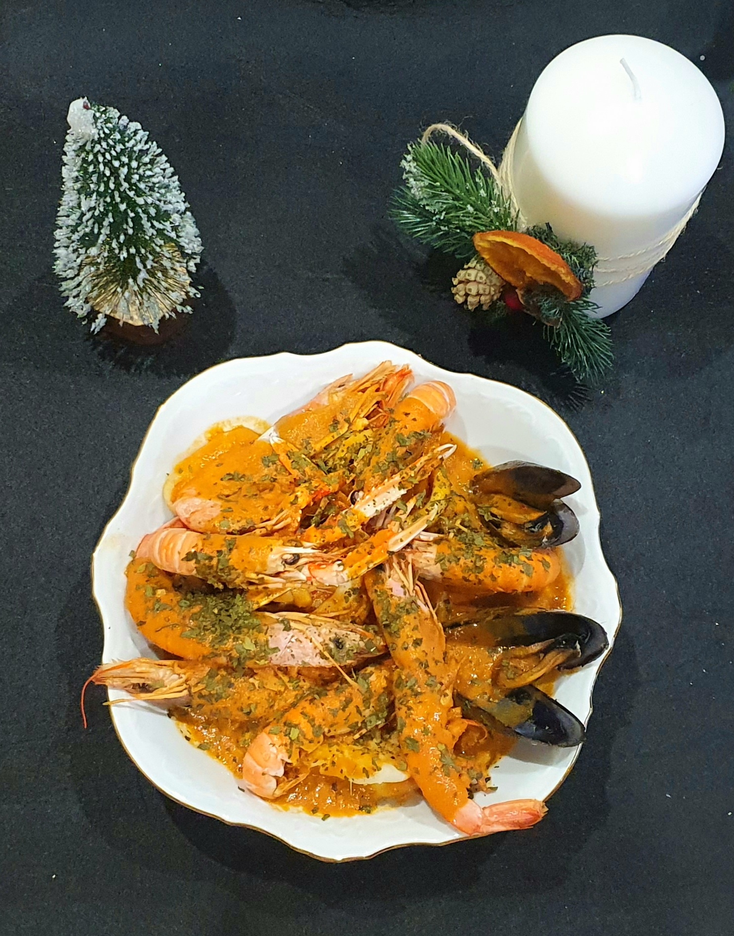 o bien 200 - 250 g de langostinos crudos sin pelar