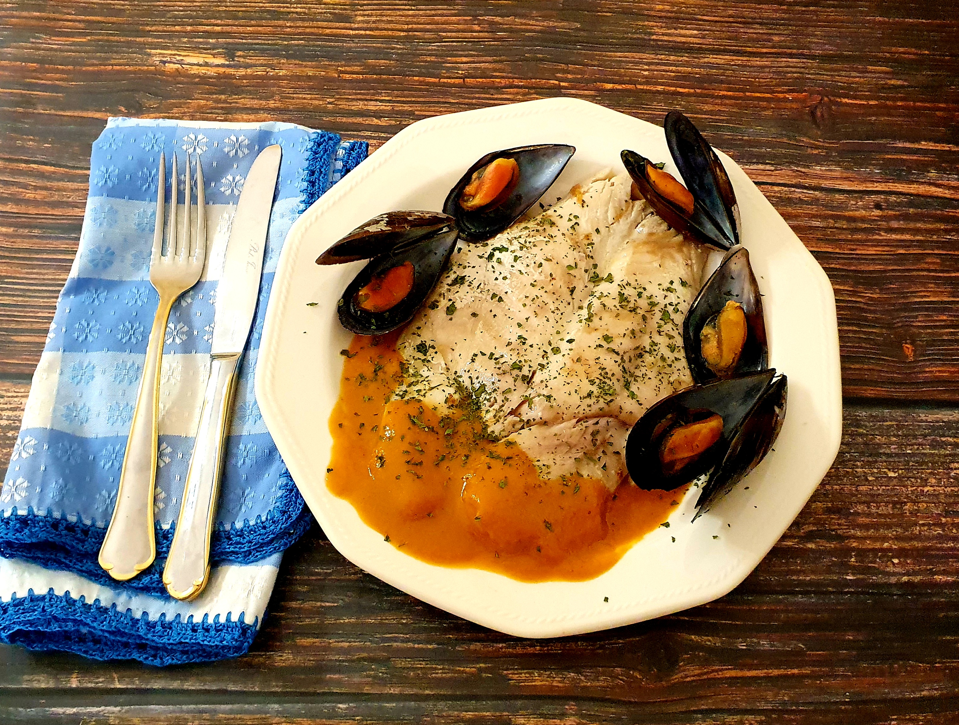 Pescado y mejillones en salsa