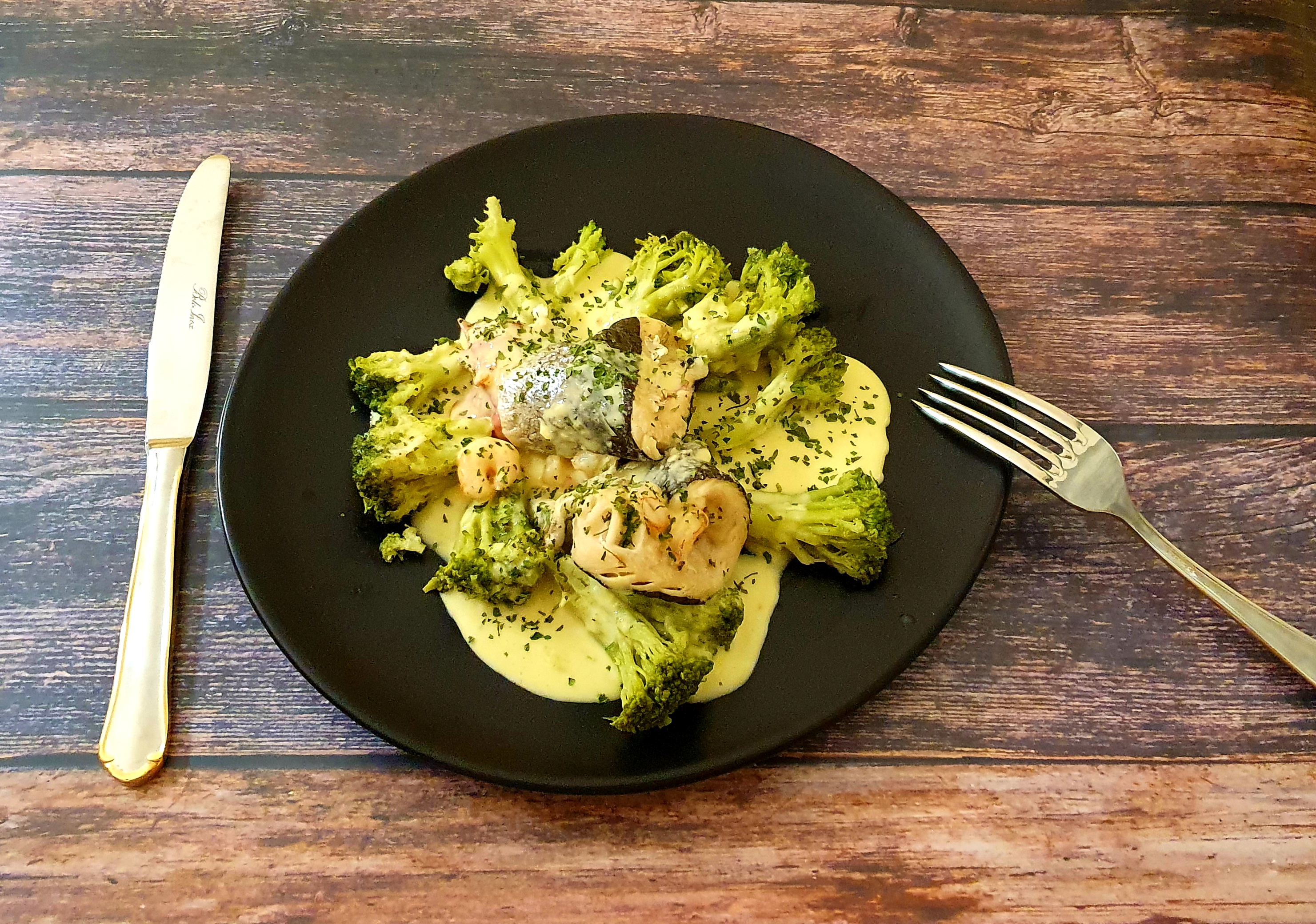 Popietas de trucha al azafrán con coliflor