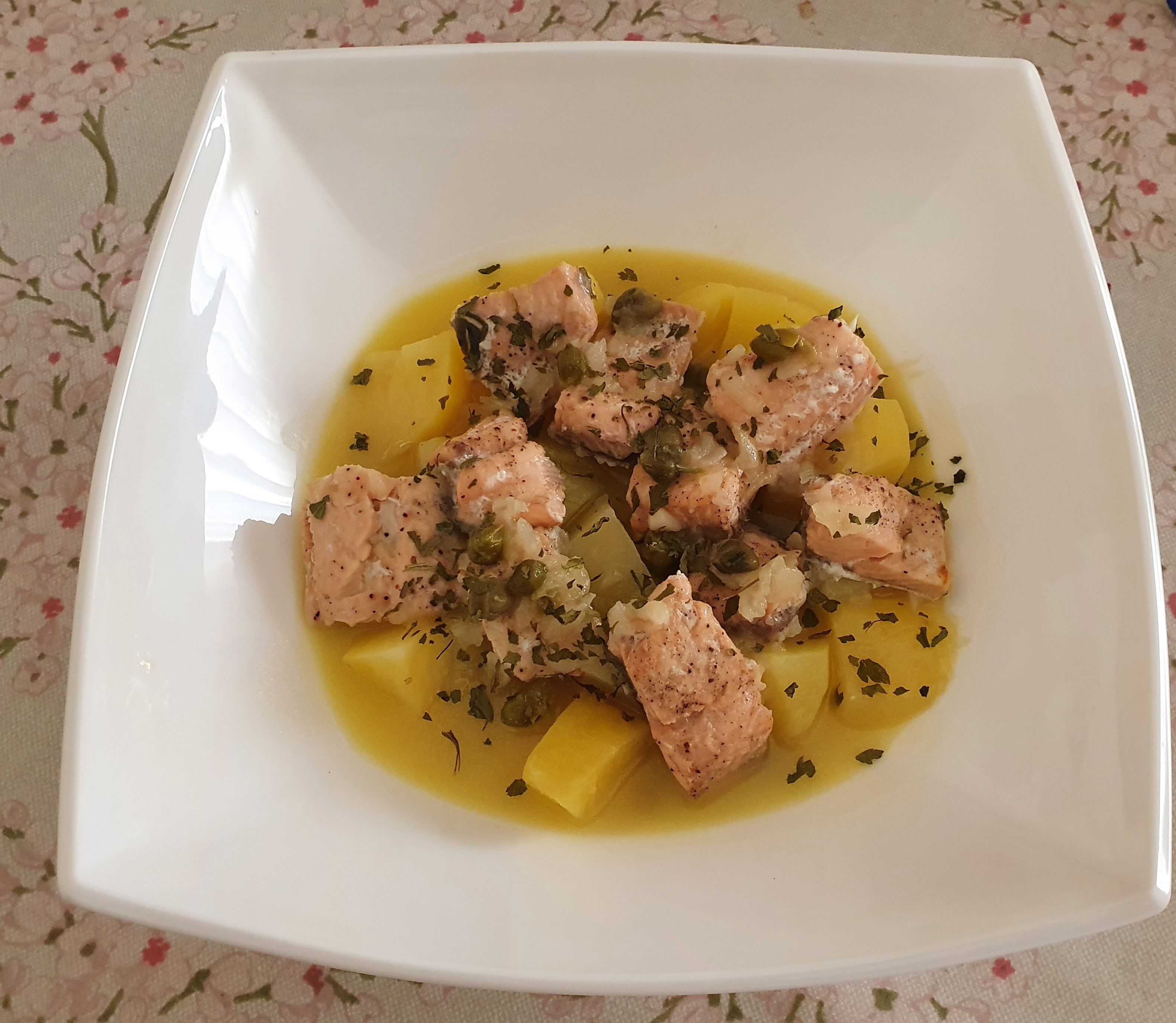 Ragú de salmón en salsa de alcaparras