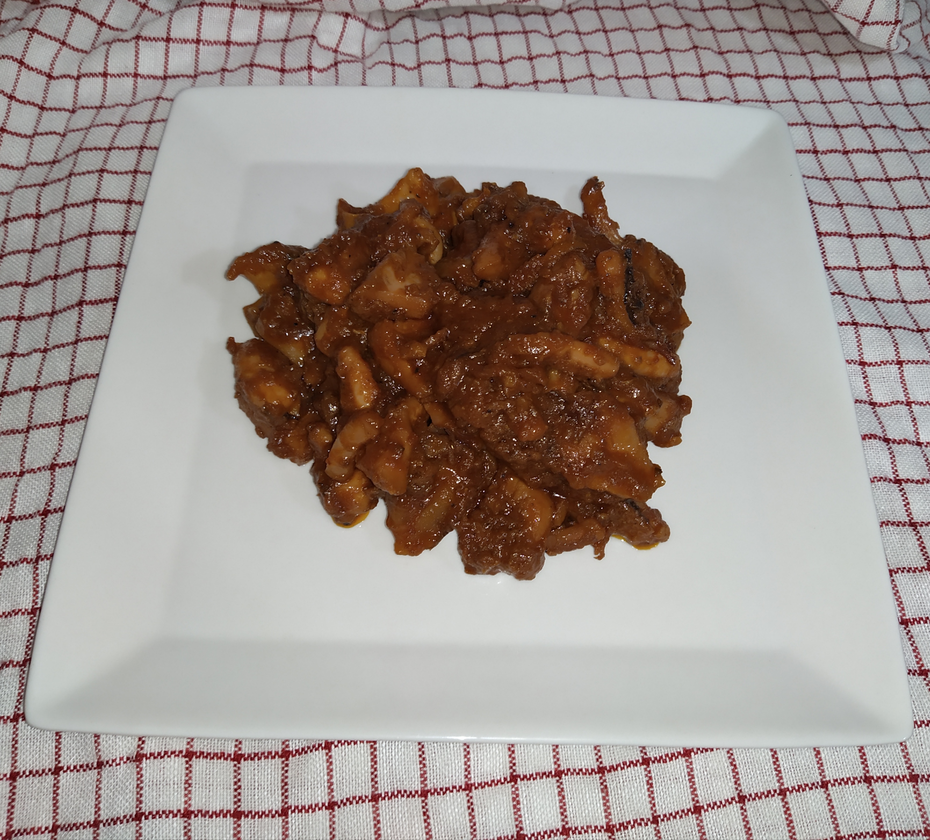 Incorpore la guindilla, la pastilla de caldo, la pimienta, 200 g de brandy y la sepia escurrida y programe 20 min/Varoma/giro inverso/vel cuchara. Retire del vaso y sirva.