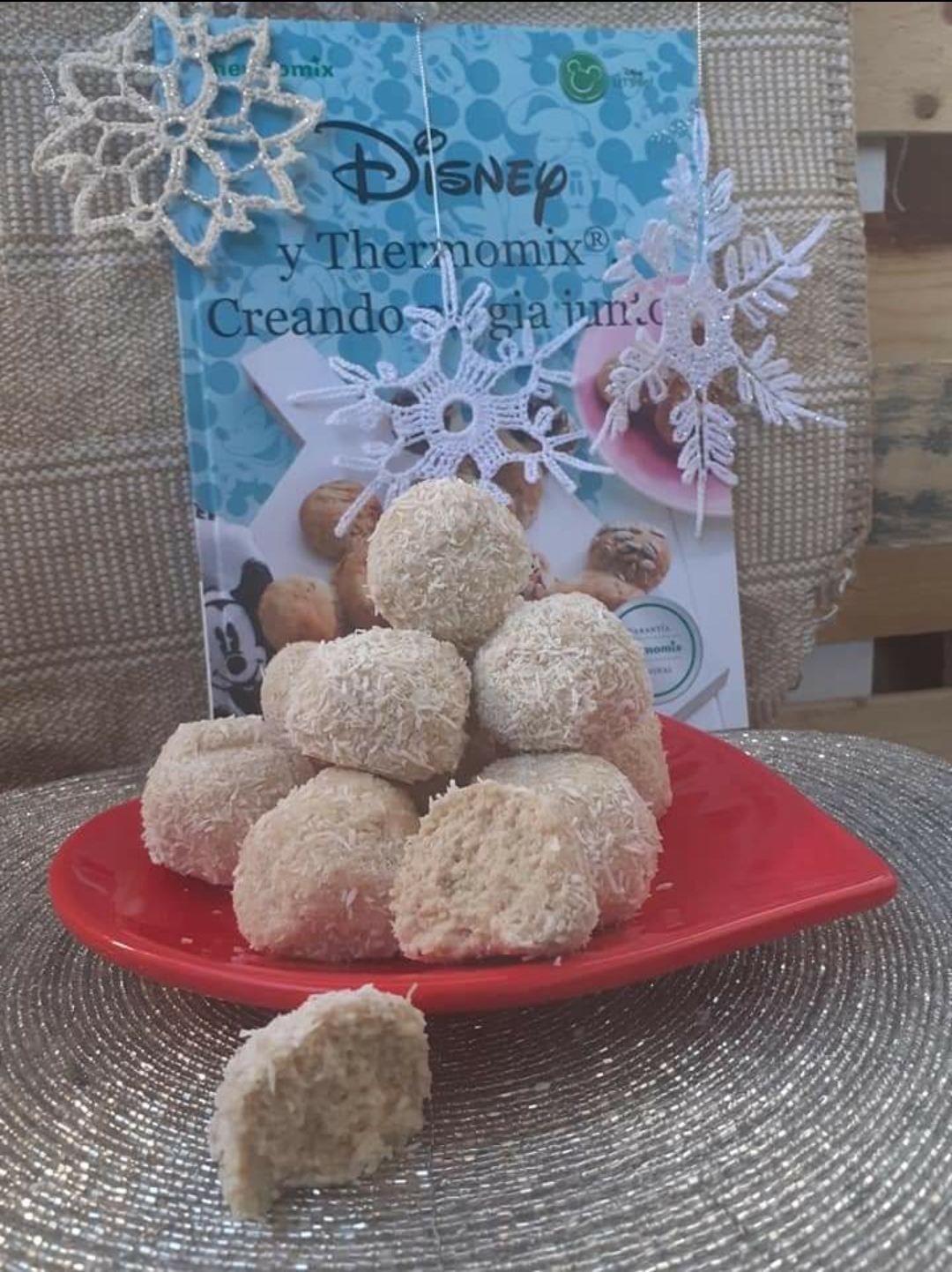 Añada la mantequilla, el azúcar, el azúcar vainillado, los copos de avena ,el coco rallado y la leche, Introduzca la espátula por la abertura y mezcle 15 seg/vel 5. Vierta la mezcla en un bol e inmediatamente, forme 60 bolas de (2,5 cm). Rebócelas con coco rallado y reserve en el frigorífico durante unos 30 minutos antes de servir las bolas de nieve al estilo Kristoff.