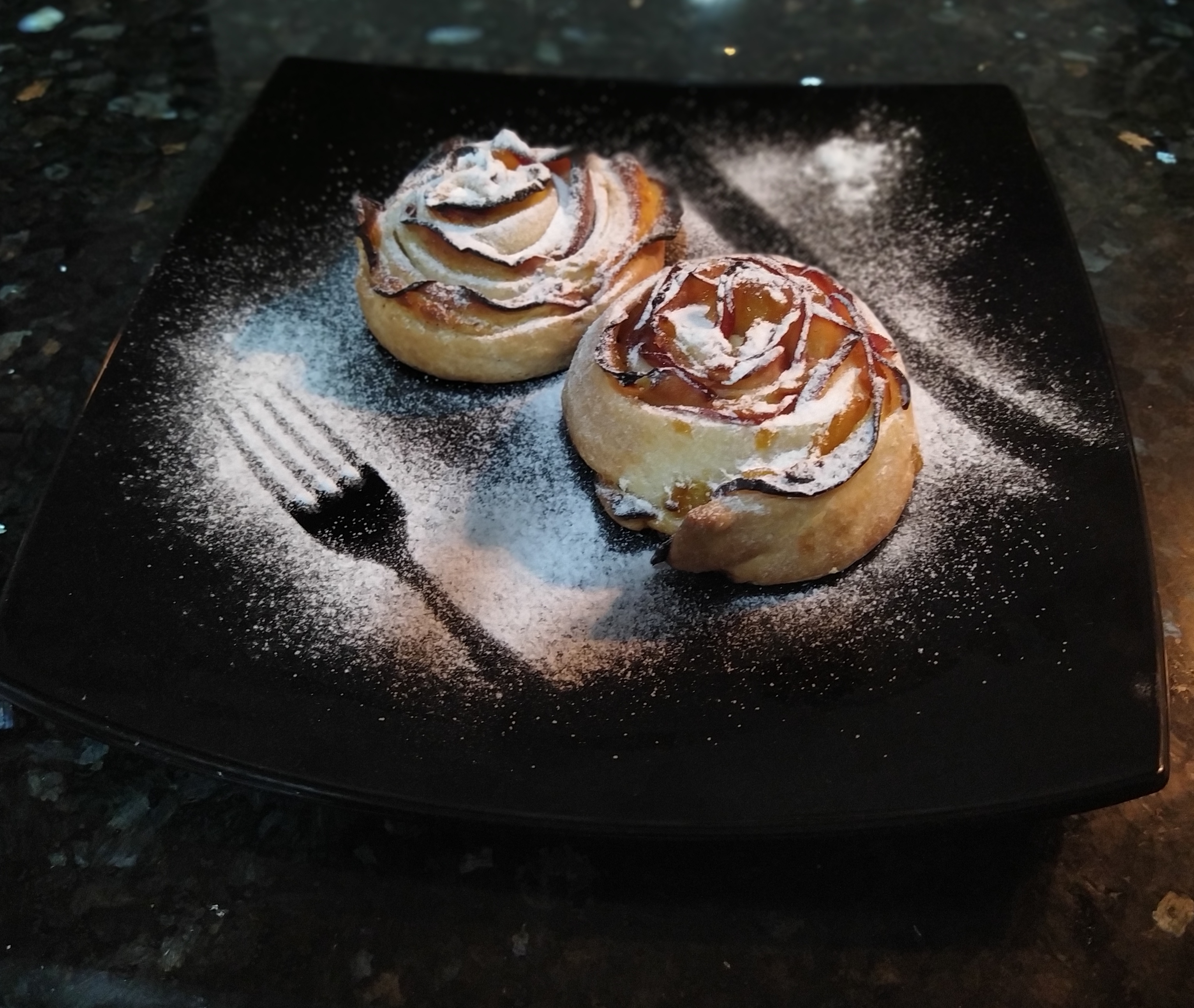 Hornee durante 20-25 minutos (180°C), hasta que estén doradas. Retire del horno y espolvoree con azúcar glas a través de un colador de malla fina. Sirva las rosas de hojaldre templadas o frías, regadas con el sirope.