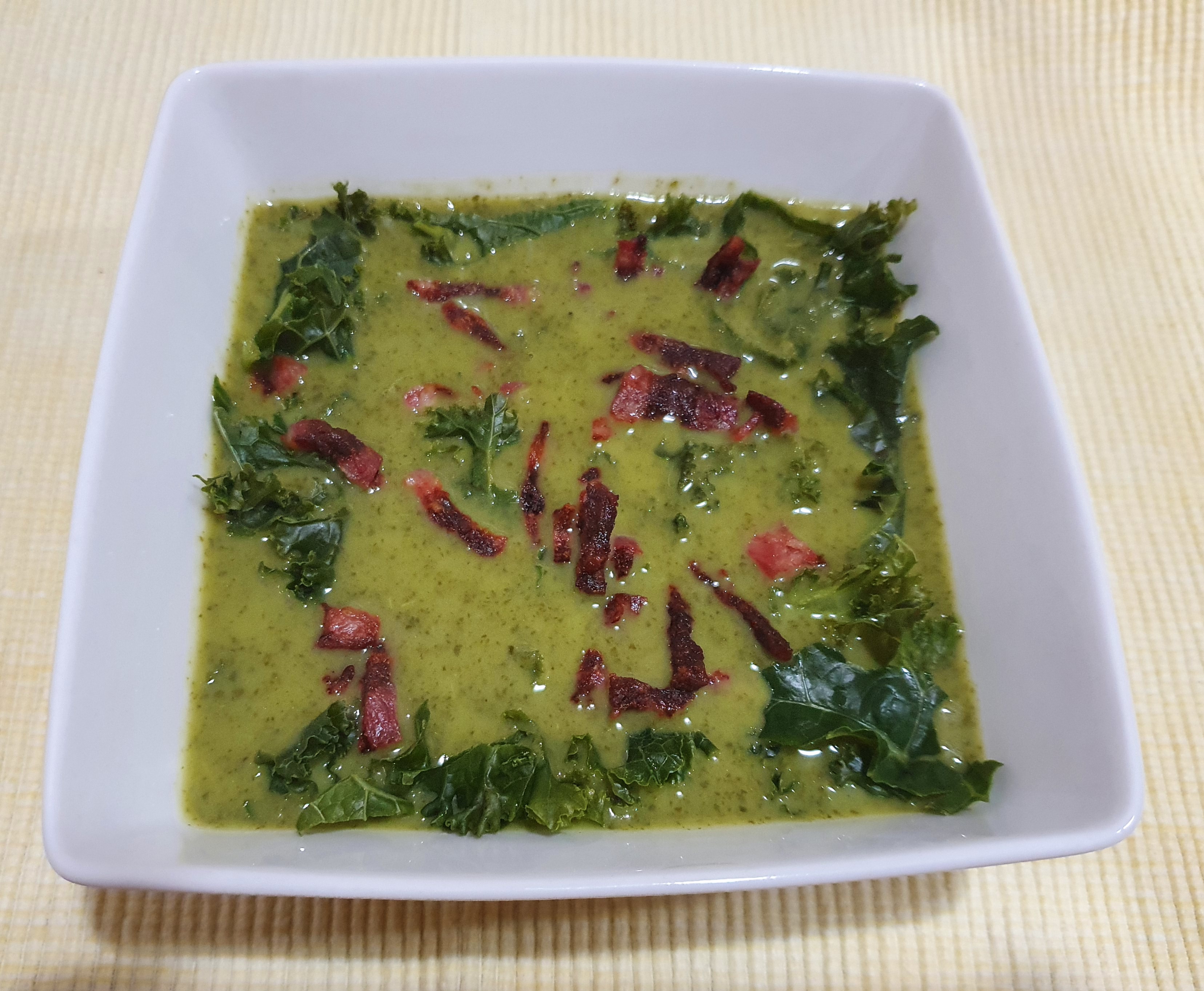 Sopa de kale con crujiente de beicon