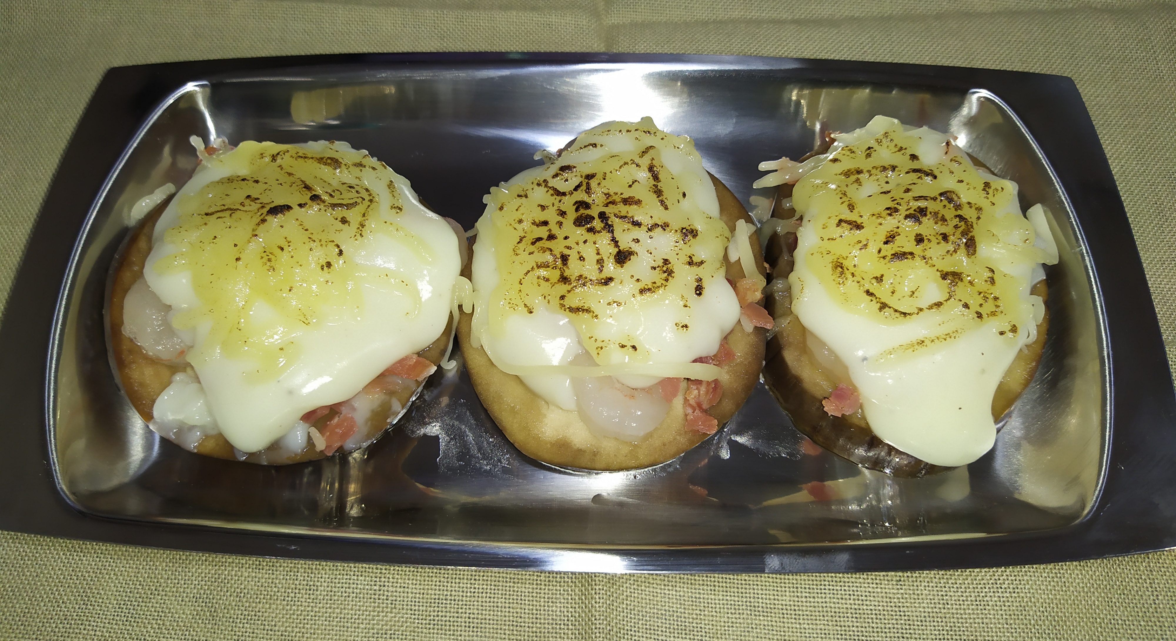 Hornee durante 10 minutos (180º con grill) o hasta que el queso esté dorado. Sirva inmediatamente.
