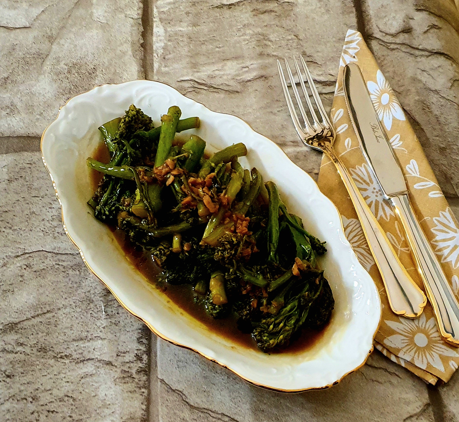 Broccolini crujiente con salsa de ajos