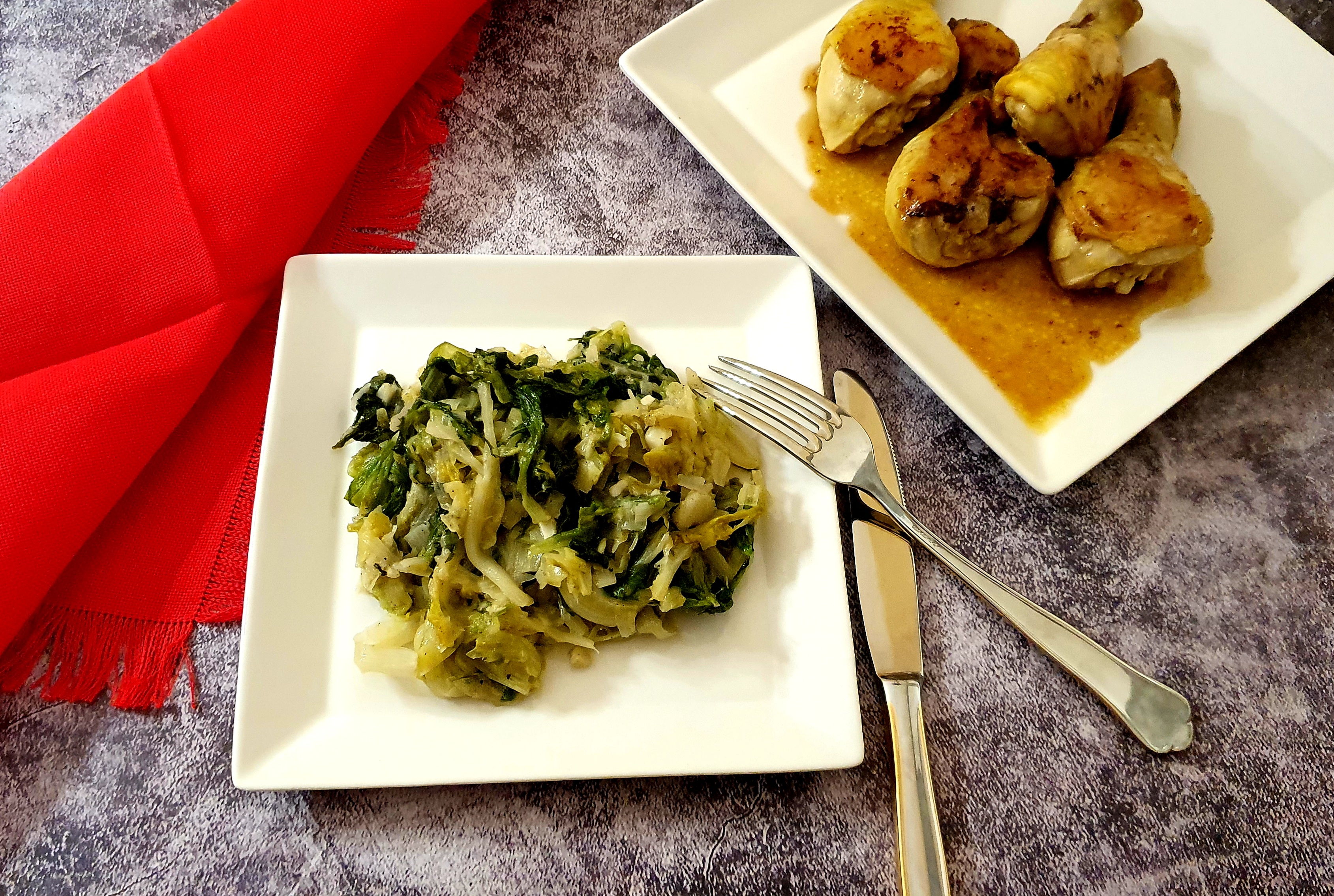 Añada la escarola, la sal y la pimienta y rehogue 5 min/120°C/cuchara/vel 2. Retire del vaso al cestillo colocado sobre un bol, deje escurrir y sirva caliente como guarnición de carne, pollo o pescado.