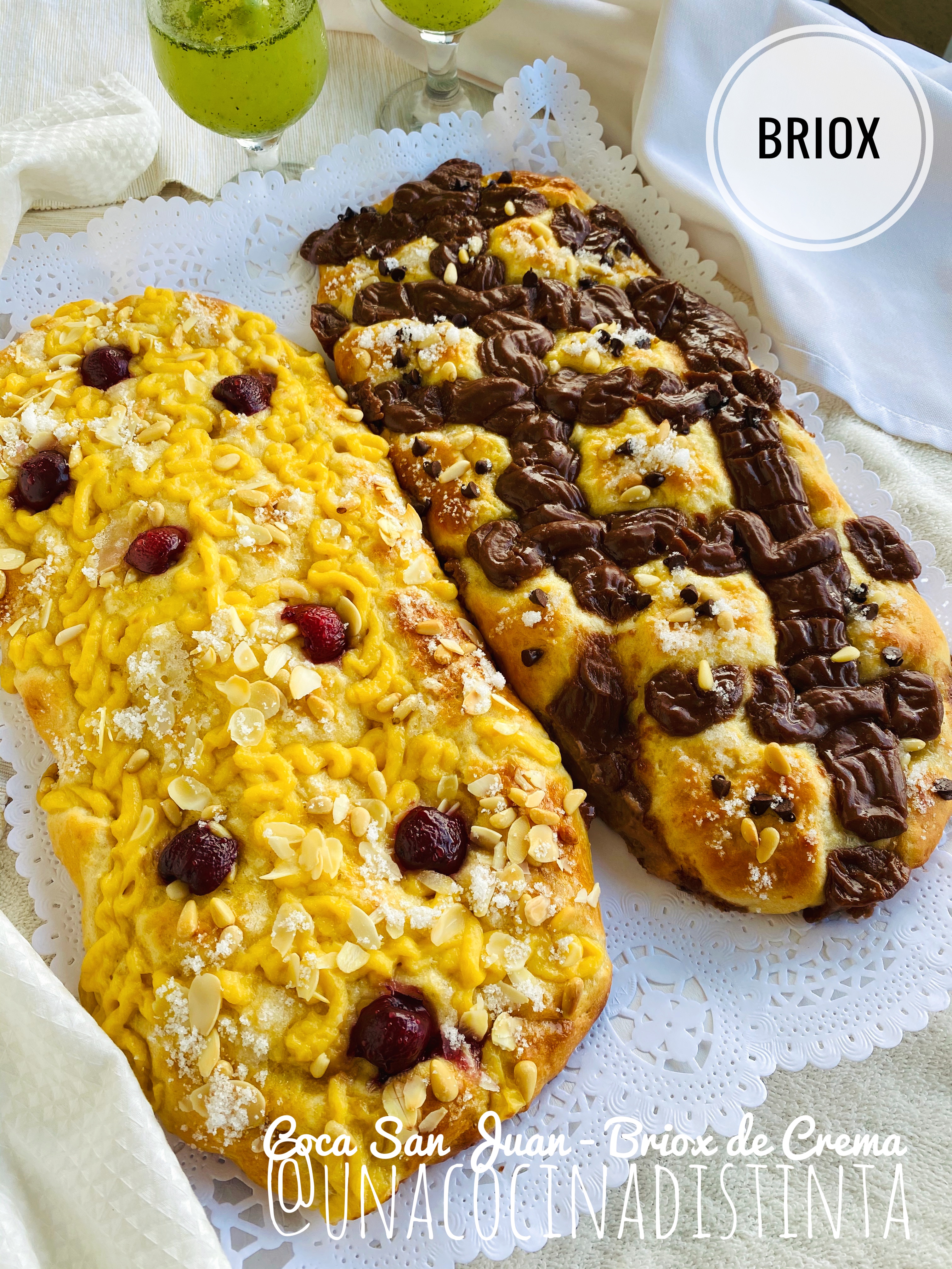 Comenzamos con la receta de BRIOX CON CREMA Y TAMBIÉN CON DECORACIÓN DE CHOCOLATE, por que como de una misma masa salen 2 Cocas medianas de tamaño, pues aprovecho y hago también otra con decoración para los niños.... y les encanta.