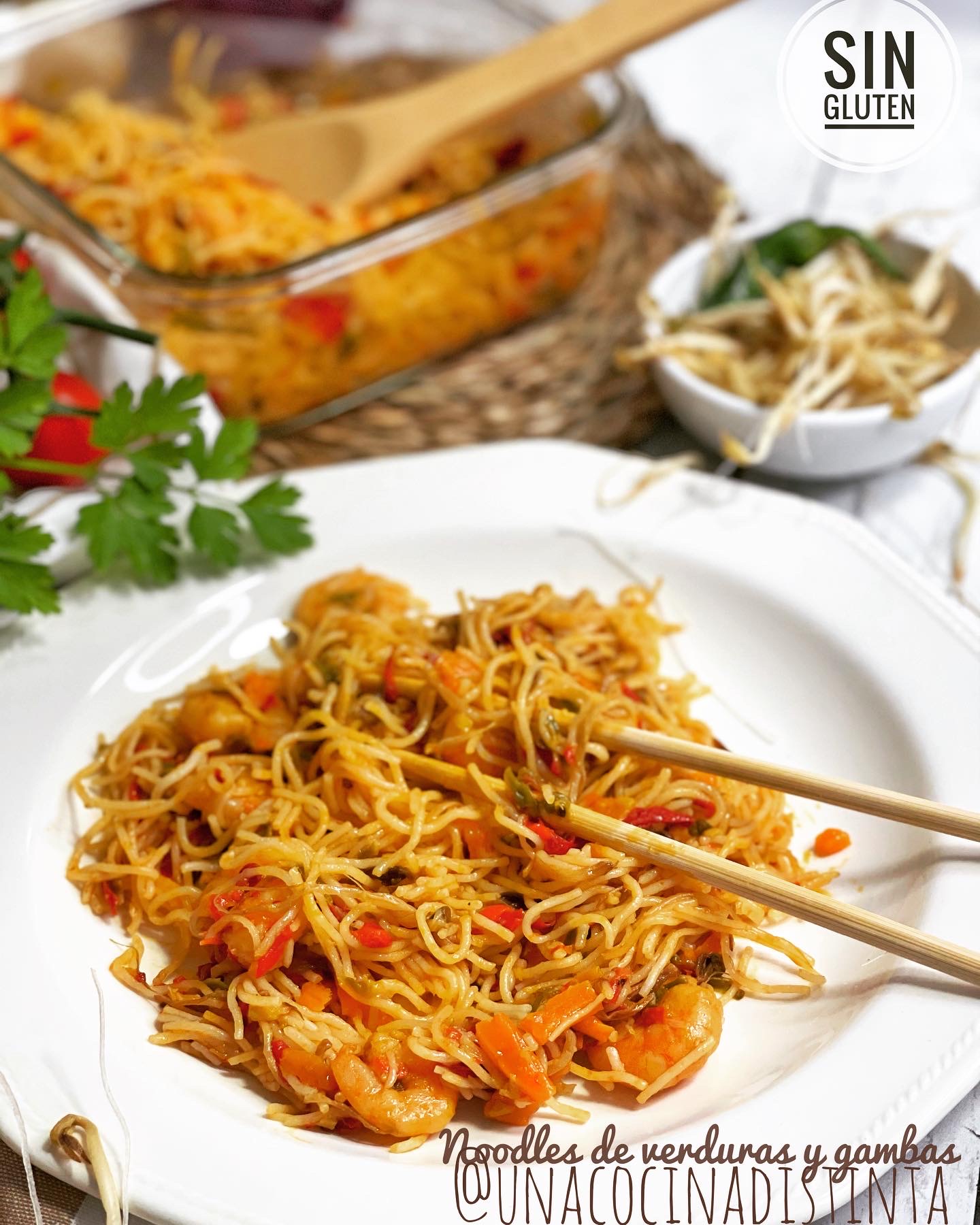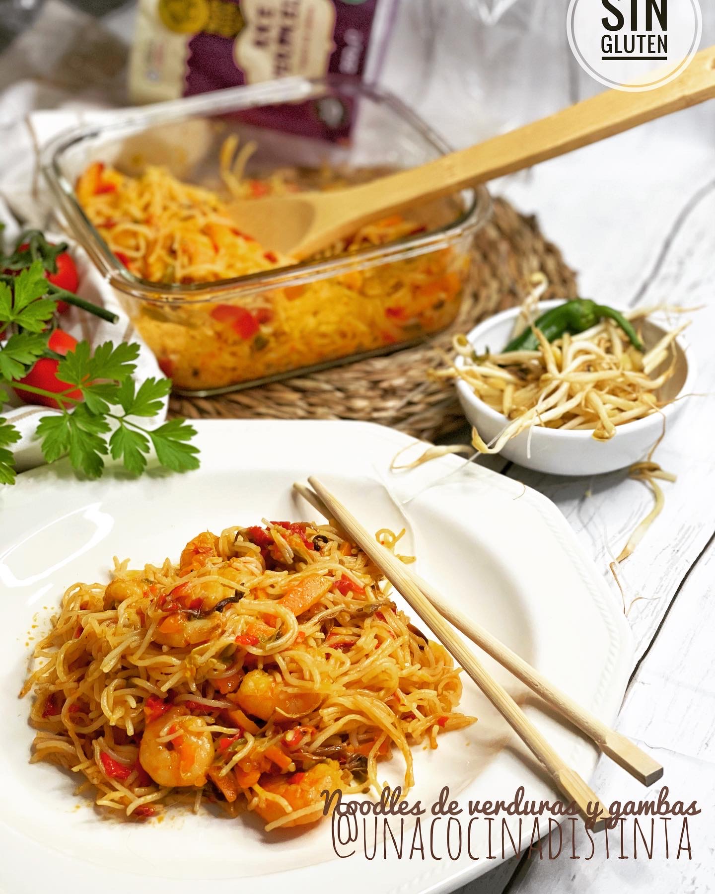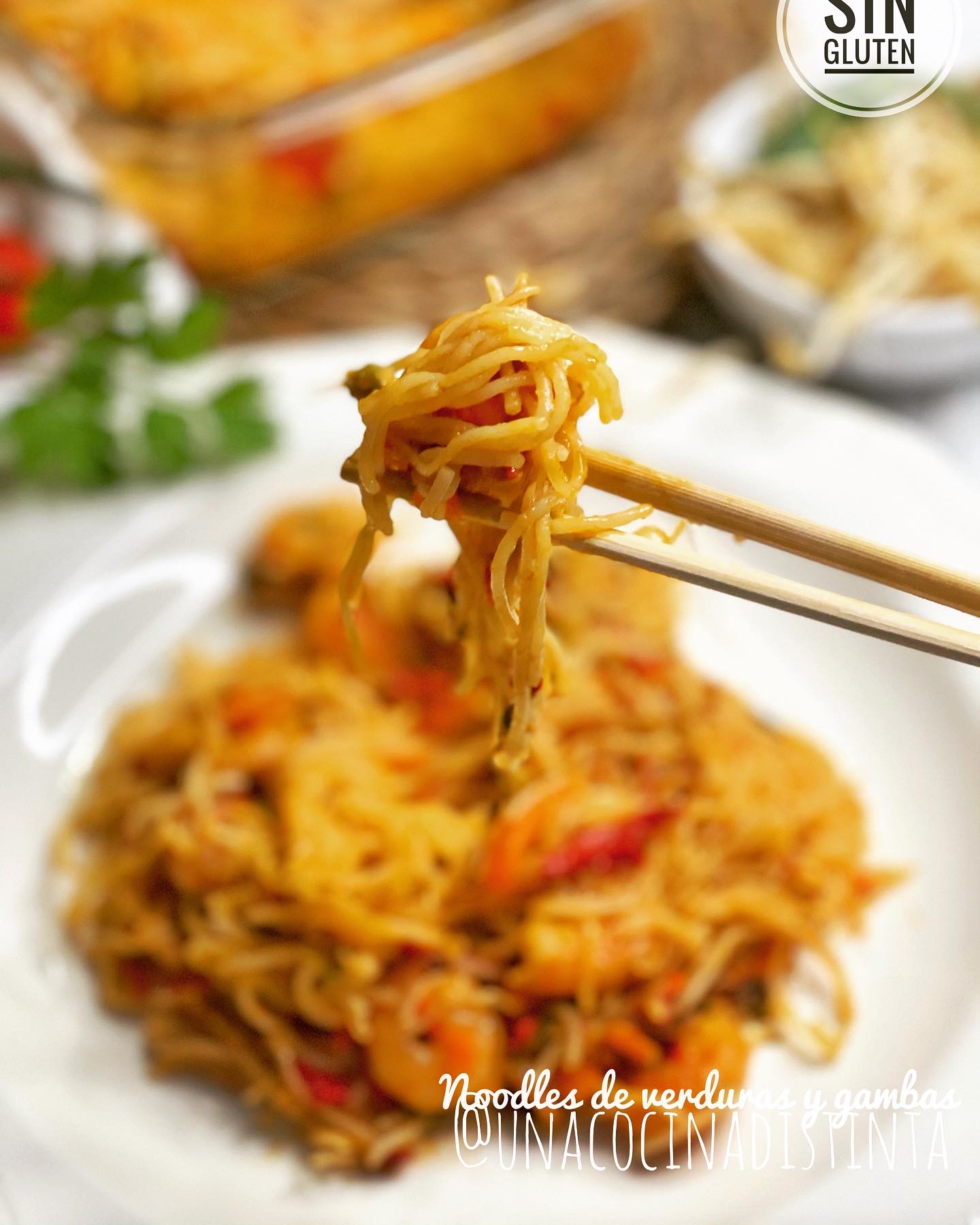 NOODLES CON VERDURAS Y GAMBAS SIN GLUTEN CON THERMOMIX