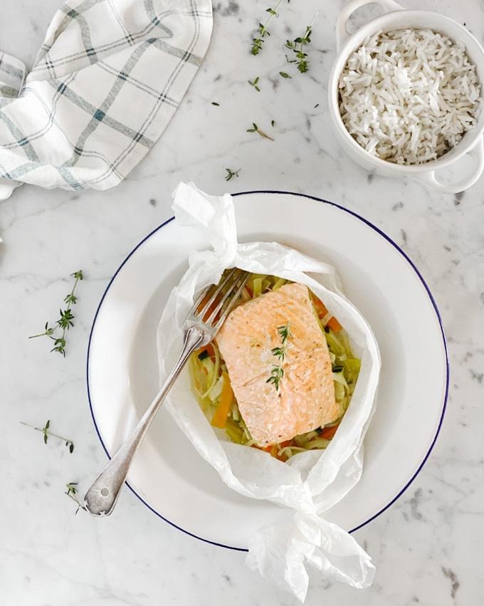 SALMÓN AL PAPILLOTE Y ARROZ CON THERMOMIX