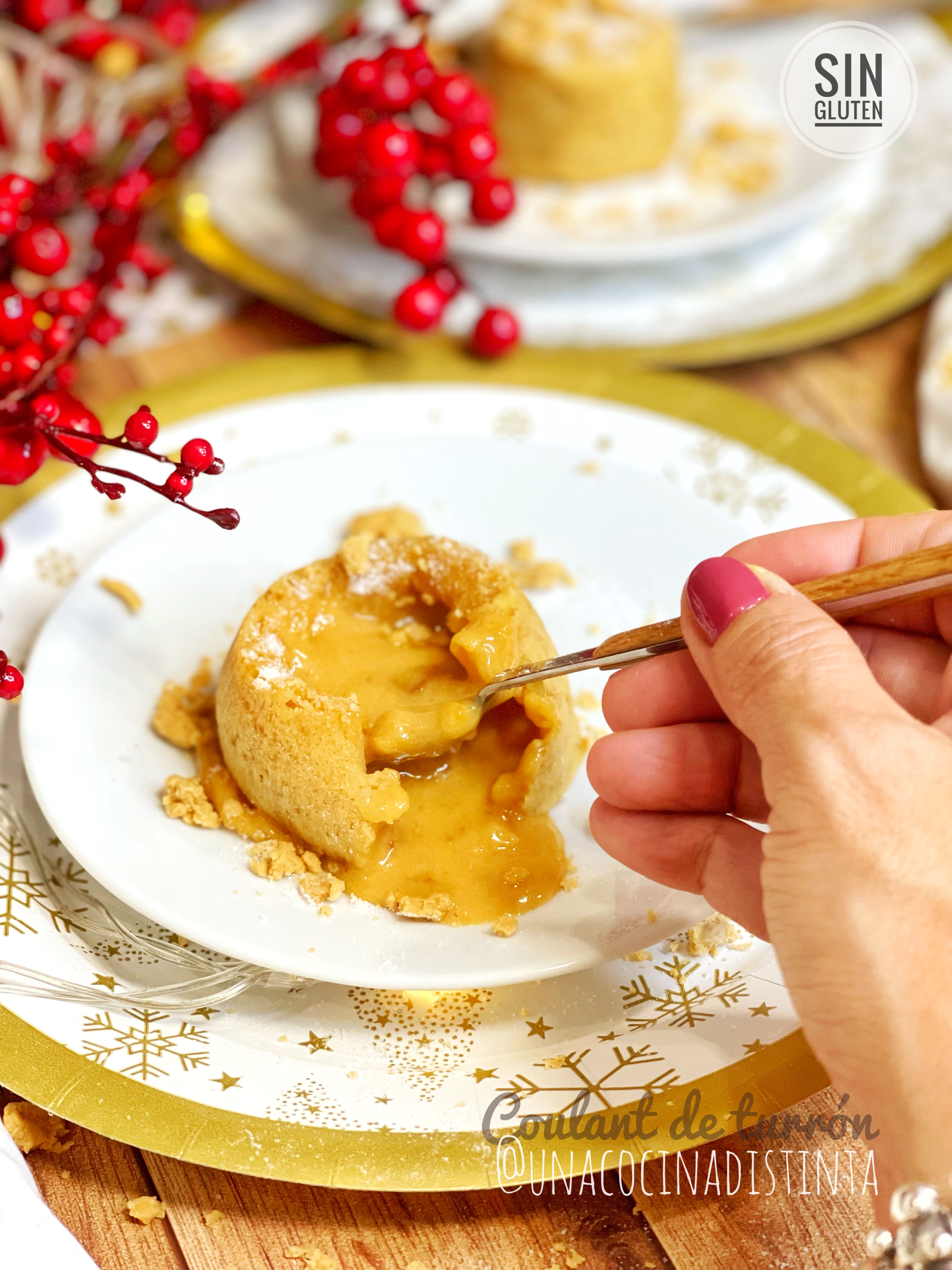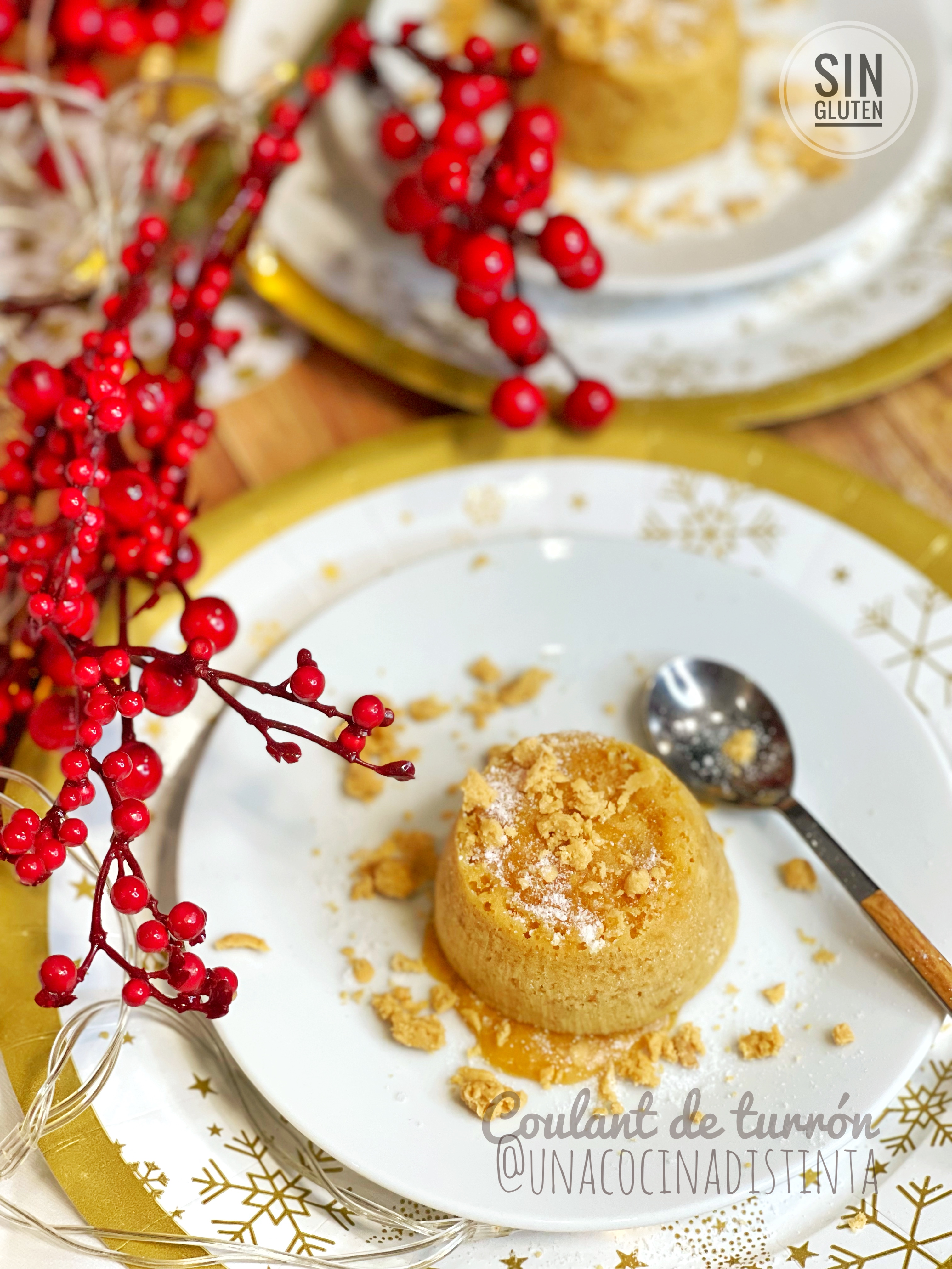 Se acercan las navidades y con ellas las recetas típicas de postres y Dulces que tanto nos chiflan, x lo menos en casa nos volvemos locos haciendo de todo desde turrones de todo tipo, galletas, tronco de chocolate… y como no el chocolate y también el turrón de jijona son los ingredientes Estrella, a mi me chiflan y x eso escogí esta receta “coulant de turrón “ para transformarla y hacer mi versión SIN GLUTEN, y SIN LACTOSA Y SIN AZÚCAR.