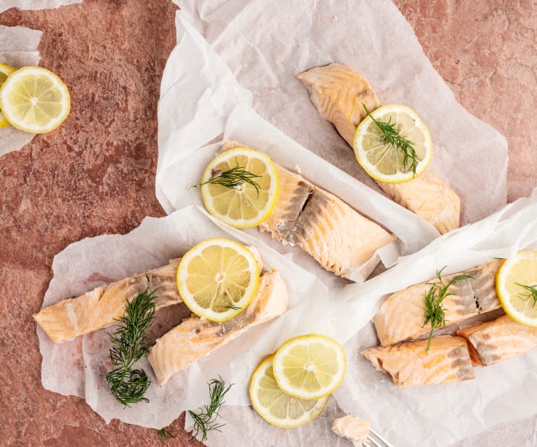 Lo más saludable de comer pescado, unos filetes de merluza, lenguado, salmón... el que quieras y cocinado al vapor en tu varoma, como ejemplo SALMÓN DE SALSA BALSÁMICO Y CALABACÁN.