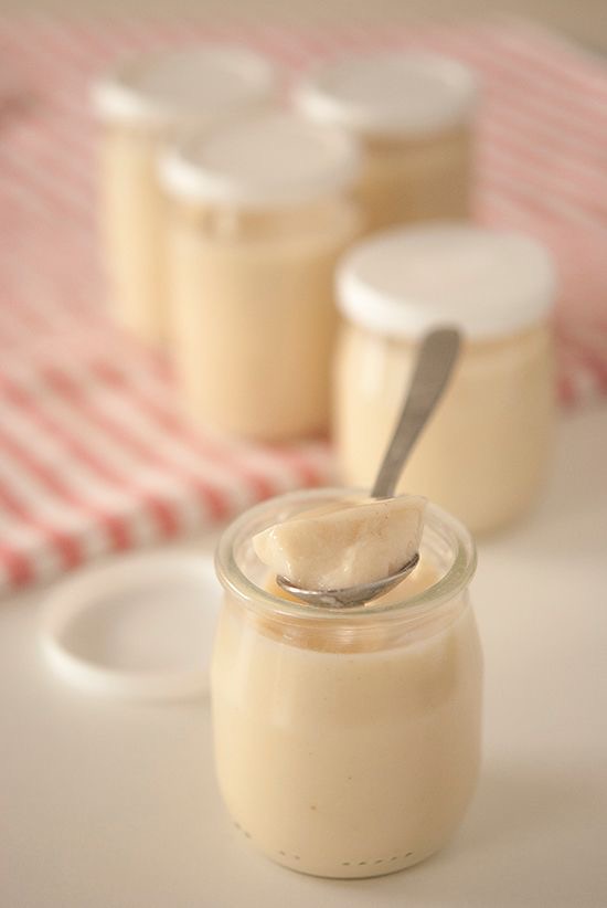C- Yogures más espesos: los procesos de calentamiento y enfriado usados con la leche cruda también sirven para pasteurizarla y obtener una consistencia más espesa. Puedes usar también leche en polvo y nata. Aquí tienes el “yogur de coco y piña en varoma”. También podrías probar de otros sabores como los de la foto de abajo que son de mango, brutales!!!!!