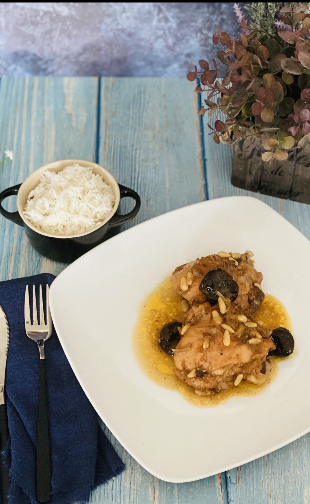 Acompaña muy bien a este plato, arroz de guarnición o unas patatas a cuadritos hechas al Varoma, al mismo tiempo de cuando ponemos el pollo en el vaso.