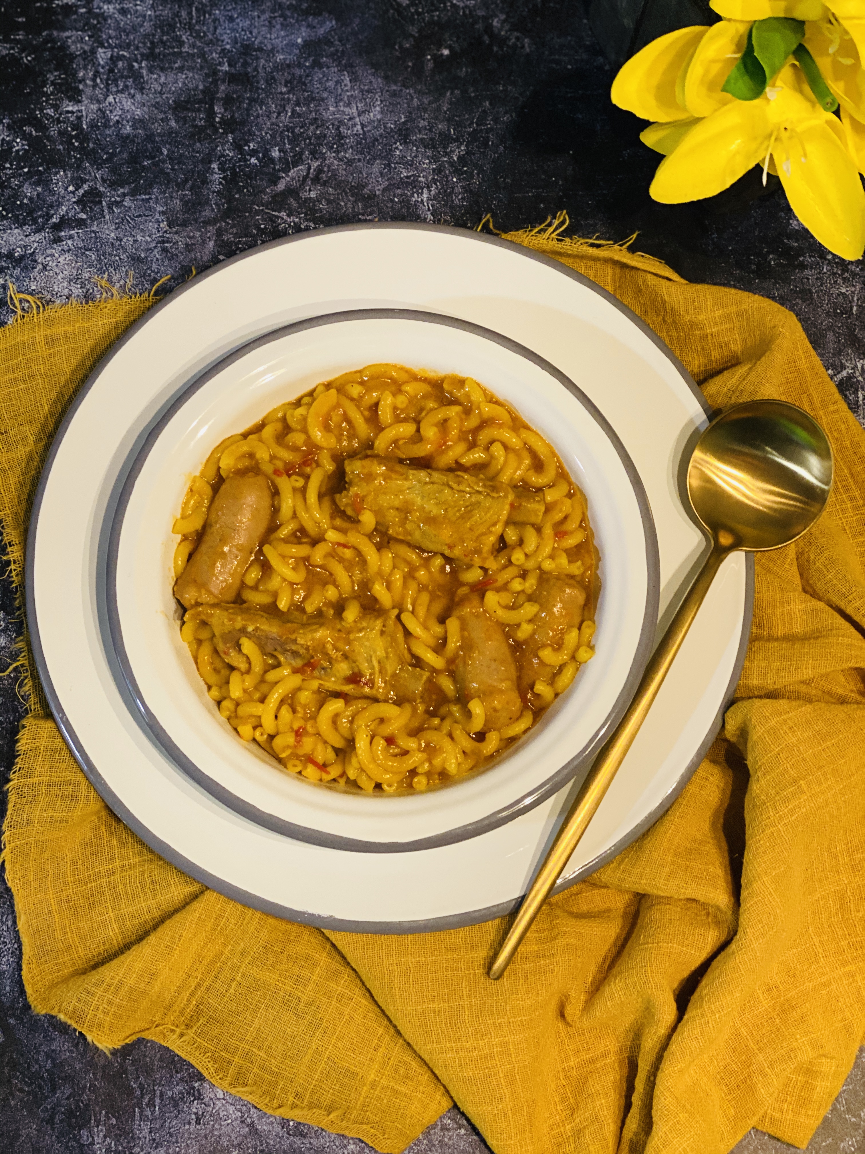 Fideos con costilla y salchichas