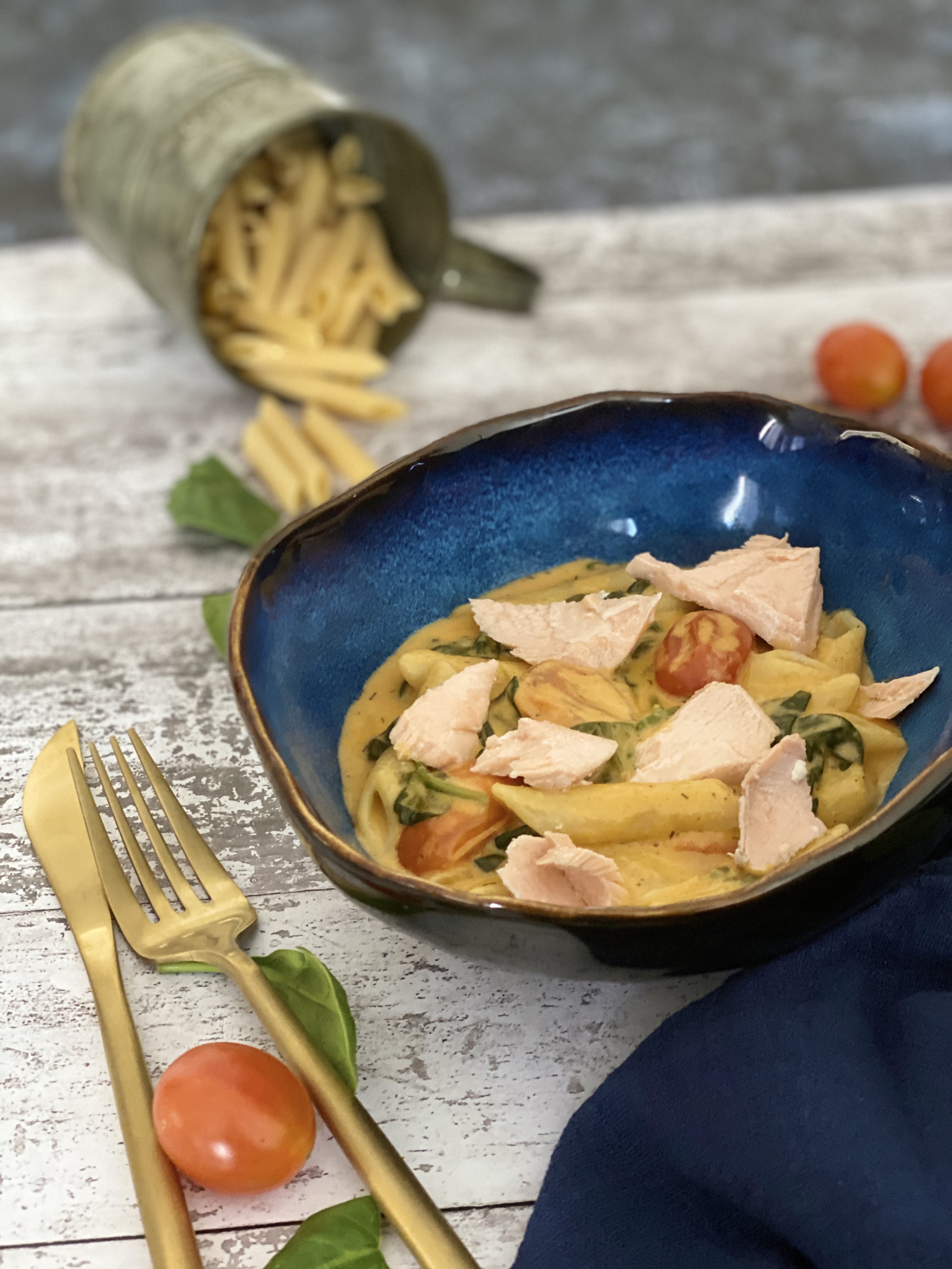 Ésta es la típica receta donde comes saludable y rico... espinacas, salmón, tomates cherrys son ingredientes llenos de vitaminas y muy saludables para nuestra salud. Si no has probado ésta rica pasta te invito a que la hagas y verás como os sorprenderá a toda la familia.
