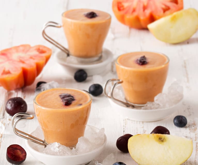 Gazpacho de manzanas, arándanos y cerezas